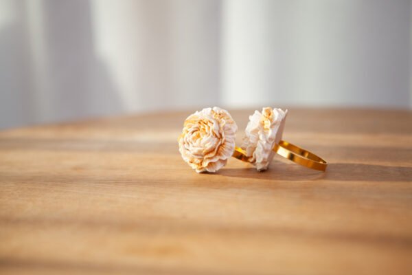 NaujasPasirinkti savybes This product has multiple variants. The options may be chosen on the product page Peržiūra€12.00 – €36.00Price range: €12.00 through €36.00Rankų darbo servetėlių žiedai – tai mažas, bet itin išraiškingas akcentas, kuris paverčia stalo serviravimą ypatingu ritualu. Kiekvienas žiedas subtiliai sujungia šiuolaikišką estetiką ir švelnią romantiką: matinės tekstūros gėlė iš Jesmonite medžiagos primena lengvą, trapų žiedą, o elegantiškas metalinis žiedas suteikia prabangos ir rafinuotumo pojūtį.