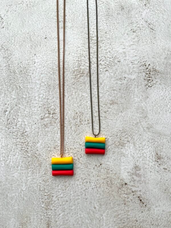 Naujas€18.00Rankų darbo pakabukas su trispalve yra kruopščiai nulipdytas iš polimerinio molio. Su dailia grandinėle jis tampa ne tik papuošalu, bet ir mažu draugu, lydinčiu tikrą šalies patriotą.