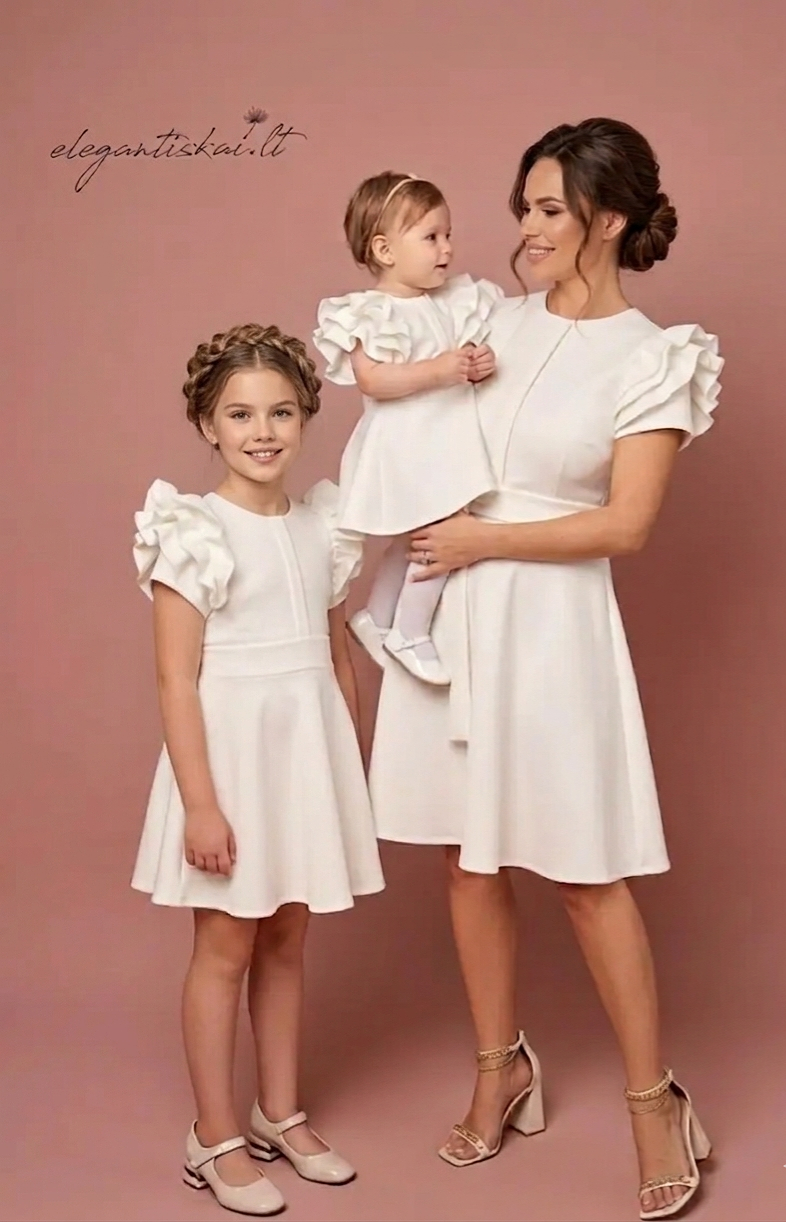 Klasikinio, tačiau kartu labai švelnaus silueto suknelės modelis puikiai tinka įvairaus amžiaus mergaitėms – nuo mažųjų iki vyresnių. Tai reiškia, kad ta pati suknelė gali lydėti mergaitę per daugybę gražių gyvenimo švenčių. Taip pat ji puikiai tinka seserų ar mamos ir dukros deriniams, kuriant jaukų ir stilingą šeimos įvaizdį šventėse ar fotosesijose.