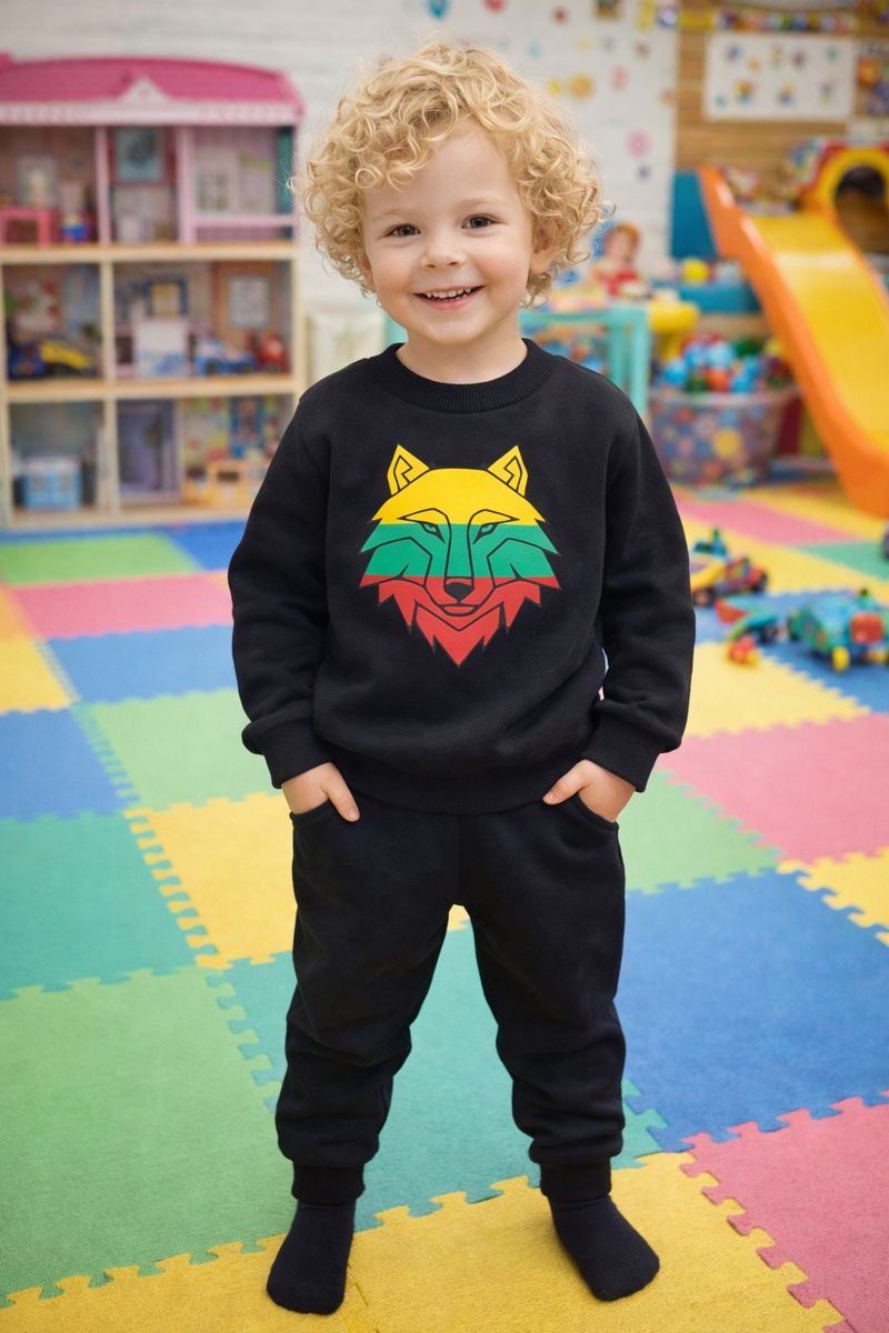 Džemperis mergaitėms ir berniukams su lietuviška atributika – trispalviu vilku. Kasdieninis, trikotažinis bliuzonas iš natūralaus audinio, kurį pamėgs ir ikimokyklinio amžiaus, ir paaugę vaikai. Medvilnė suteikia jaukumo ir natūralumo, o nedidelė elastano dalis užtikrina, kad drabužiai neprarastų formos po skalbimo ir nevaržytų aktyvių judesių.