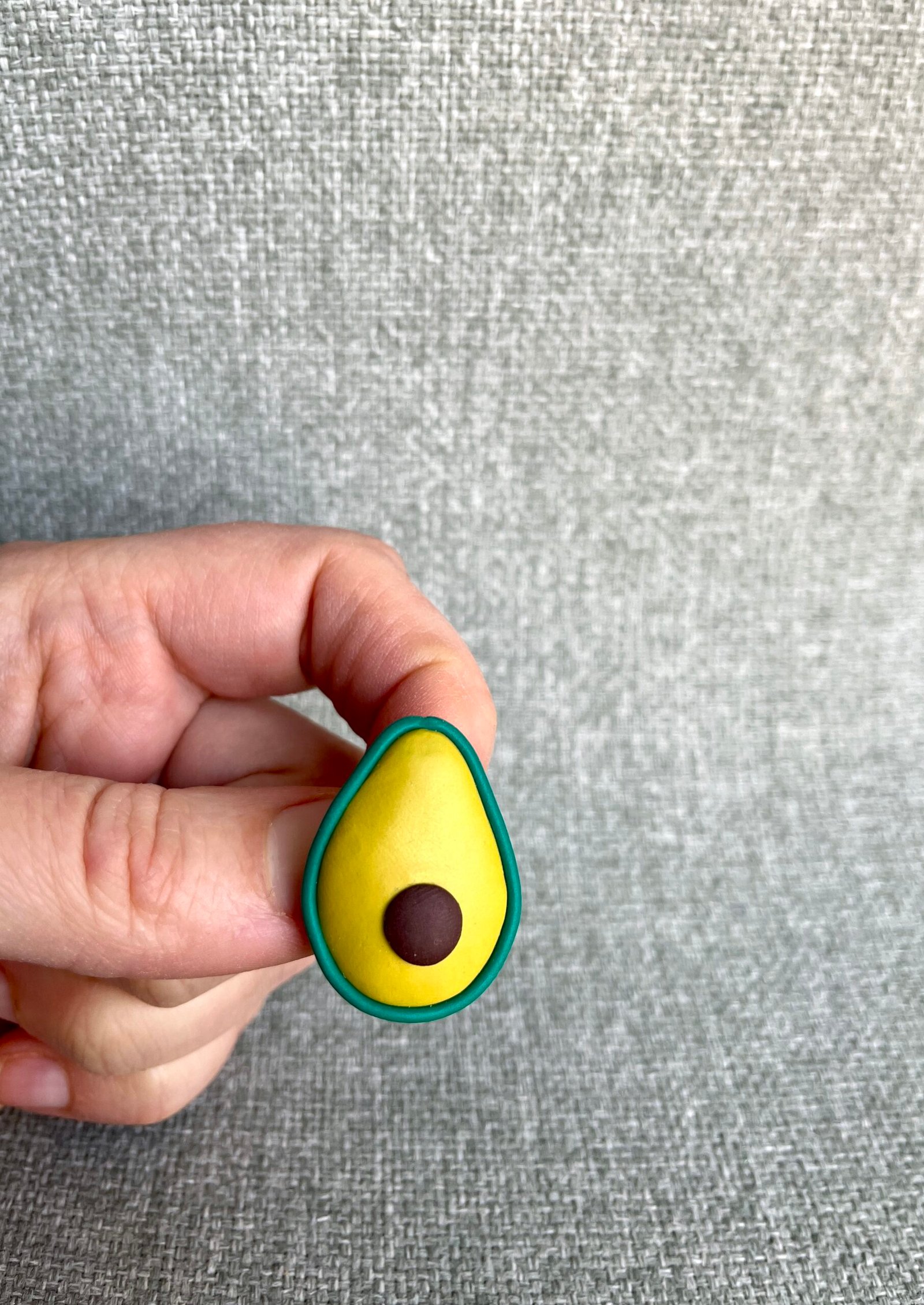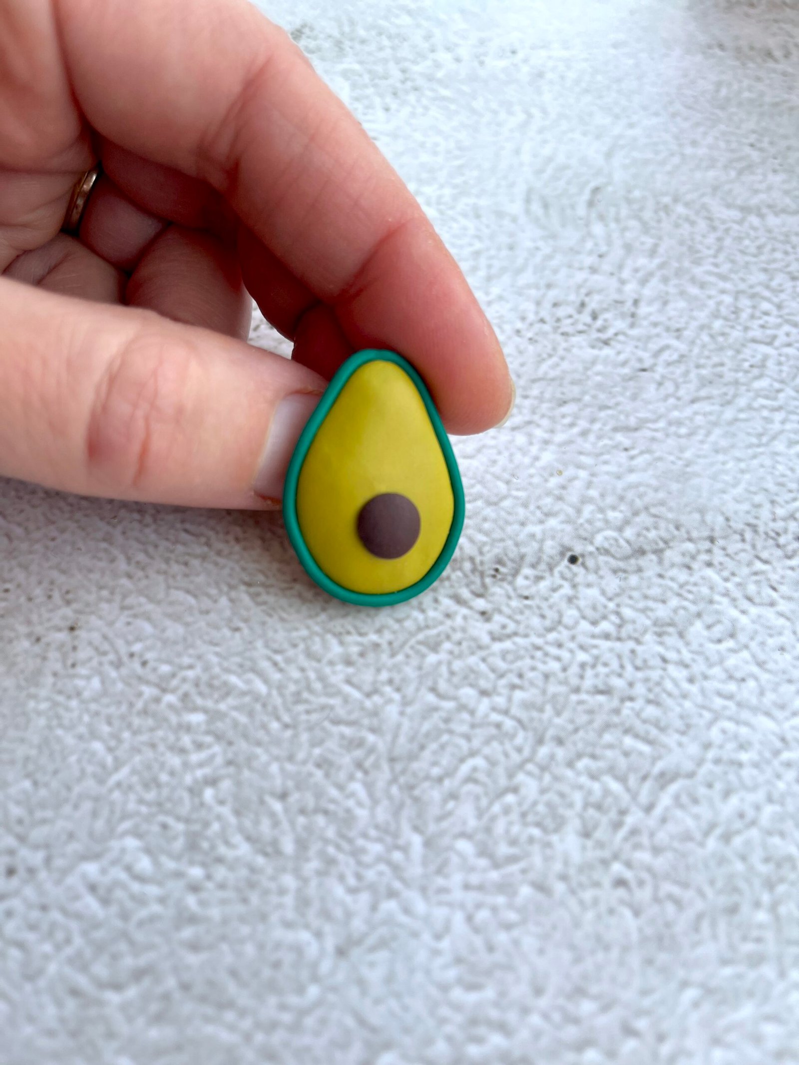 Rankų darbo avokado formos sagė – tai maža, tačiau jauki aprangos detalė, galinti papuošti švarką, paltą ar šaliką. Kiekviena sagė kruopščiai nulipdyta iš polimerinio molio, todėl yra unikali, kupina charakterio ir geros nuotaikos. Spalvingos, mielos sagutės pradžiugins kiekvieną, kuris mėgsta jaukius aksesuarus. Ši sagė yra lengva, tačiau tvirtai prisisega ir puikiai tinka tiek kasdienai, tiek ypatingoms progoms.
