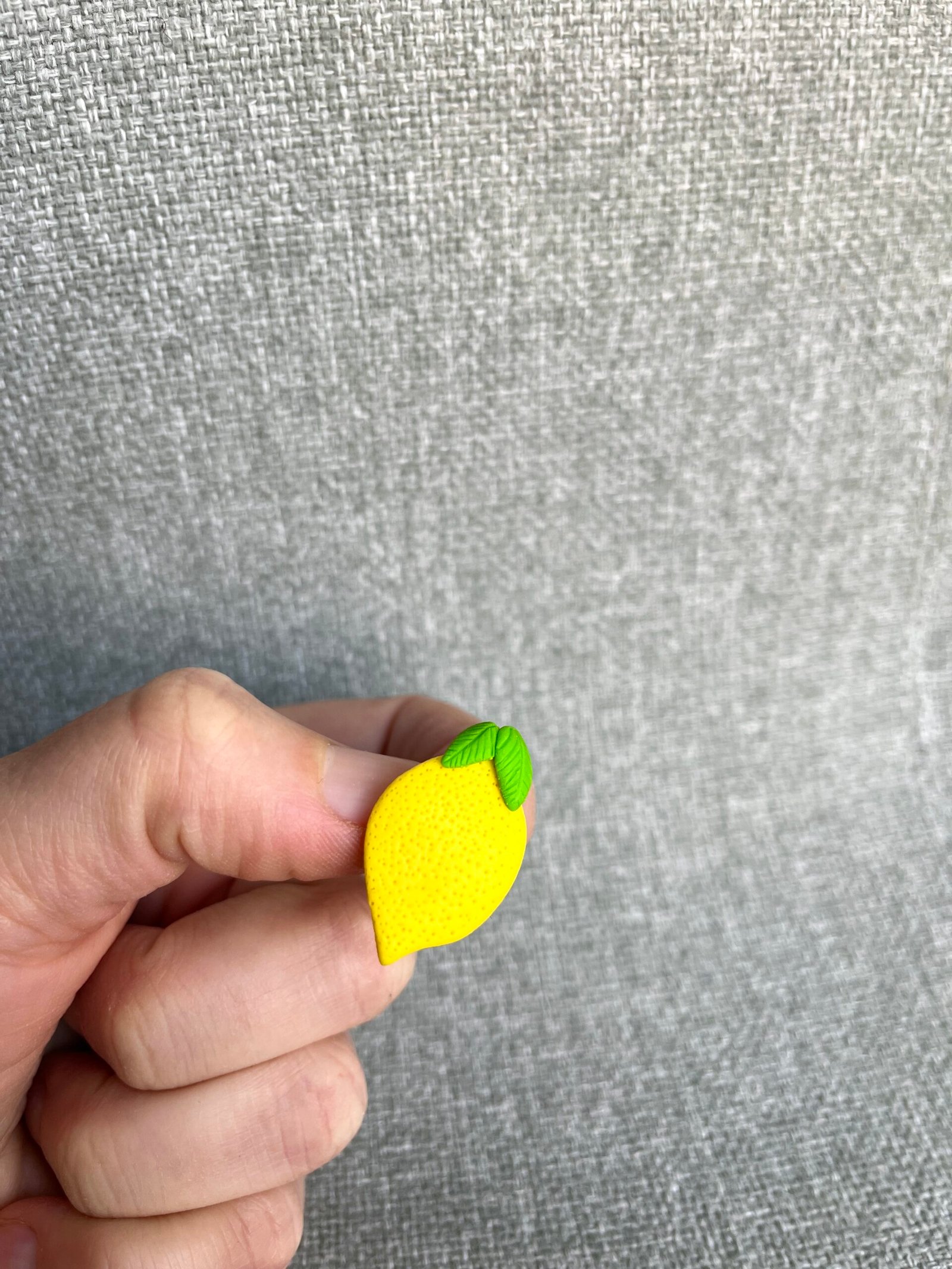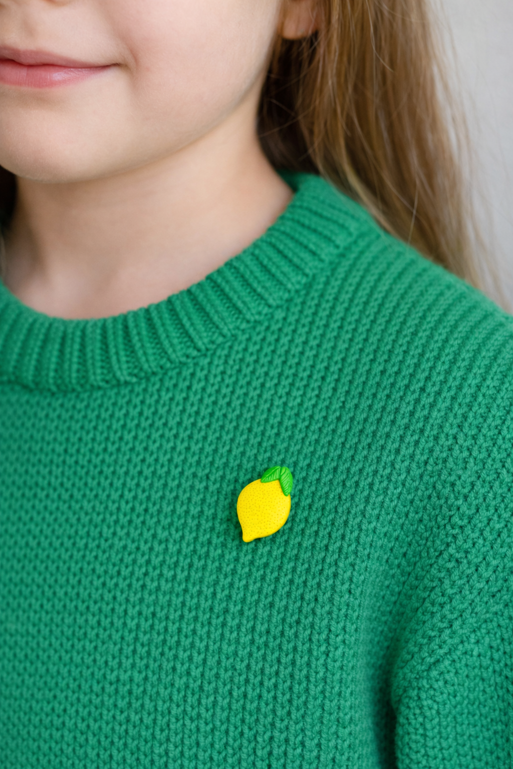 Rankų darbo citrinos formos sagė – tai maža, tačiau jauki, spalvinga aprangos detalė, galinti papuošti švarką, paltą ar šaliką. Kiekviena sagė kruopščiai nulipdyta iš polimerinio molio, todėl yra unikali, kupina charakterio ir geros nuotaikos. Spalvingos, mielos sagutės pradžiugins kiekvieną, kuris mėgsta jaukius aksesuarus. Ši sagė yra lengva, tačiau tvirtai prisisega ir puikiai tinka tiek kasdienai, tiek ypatingoms progoms.