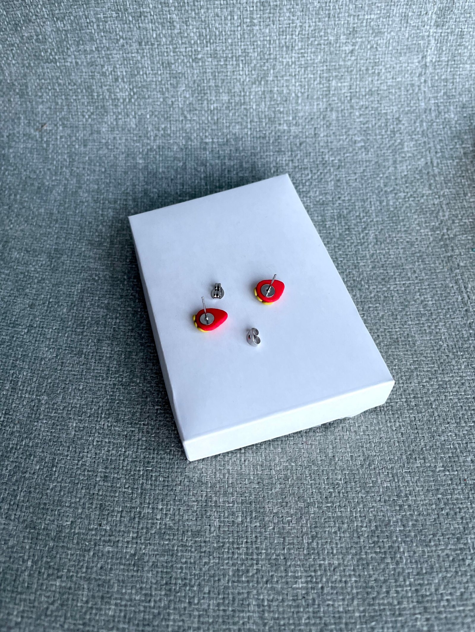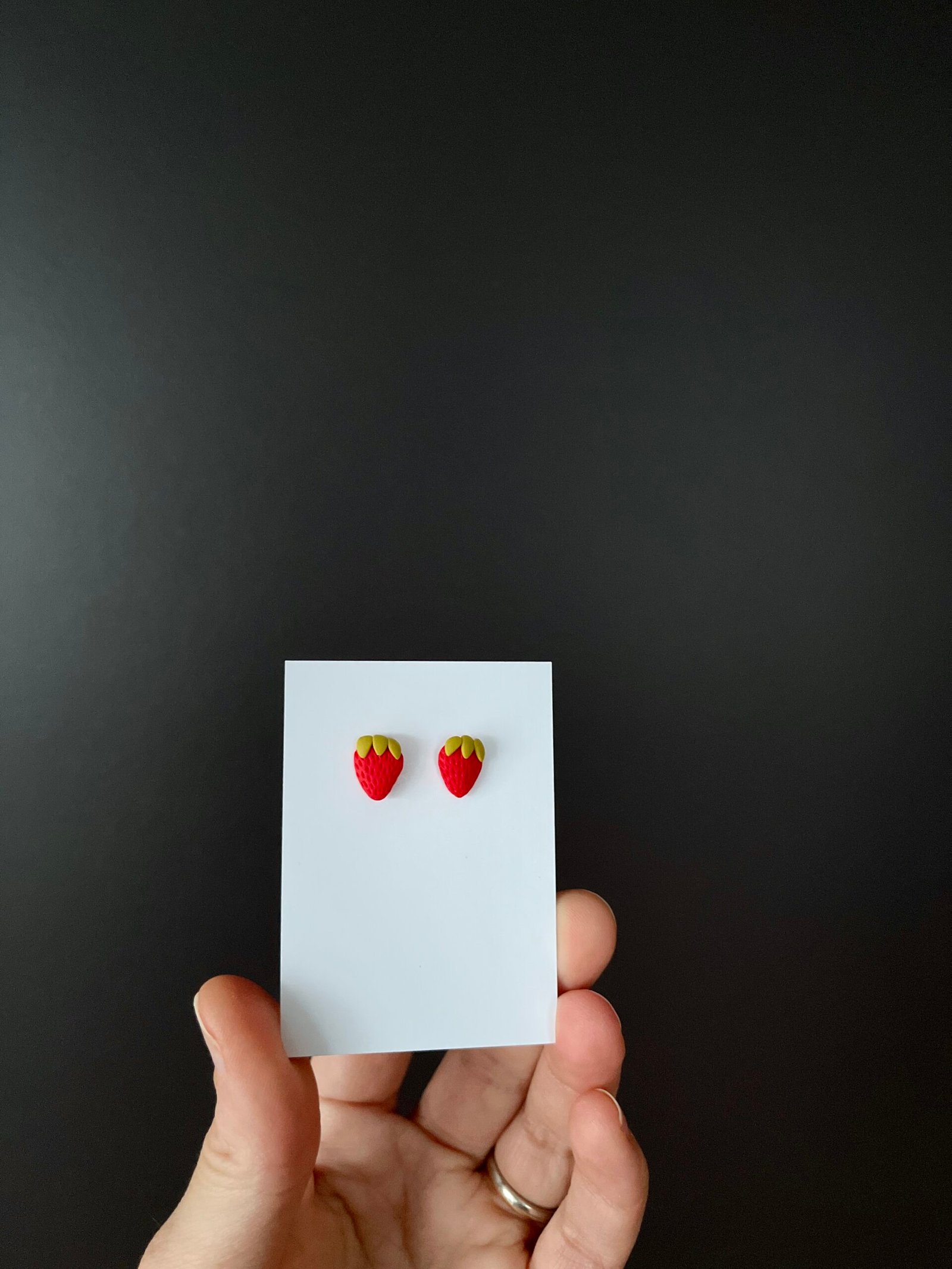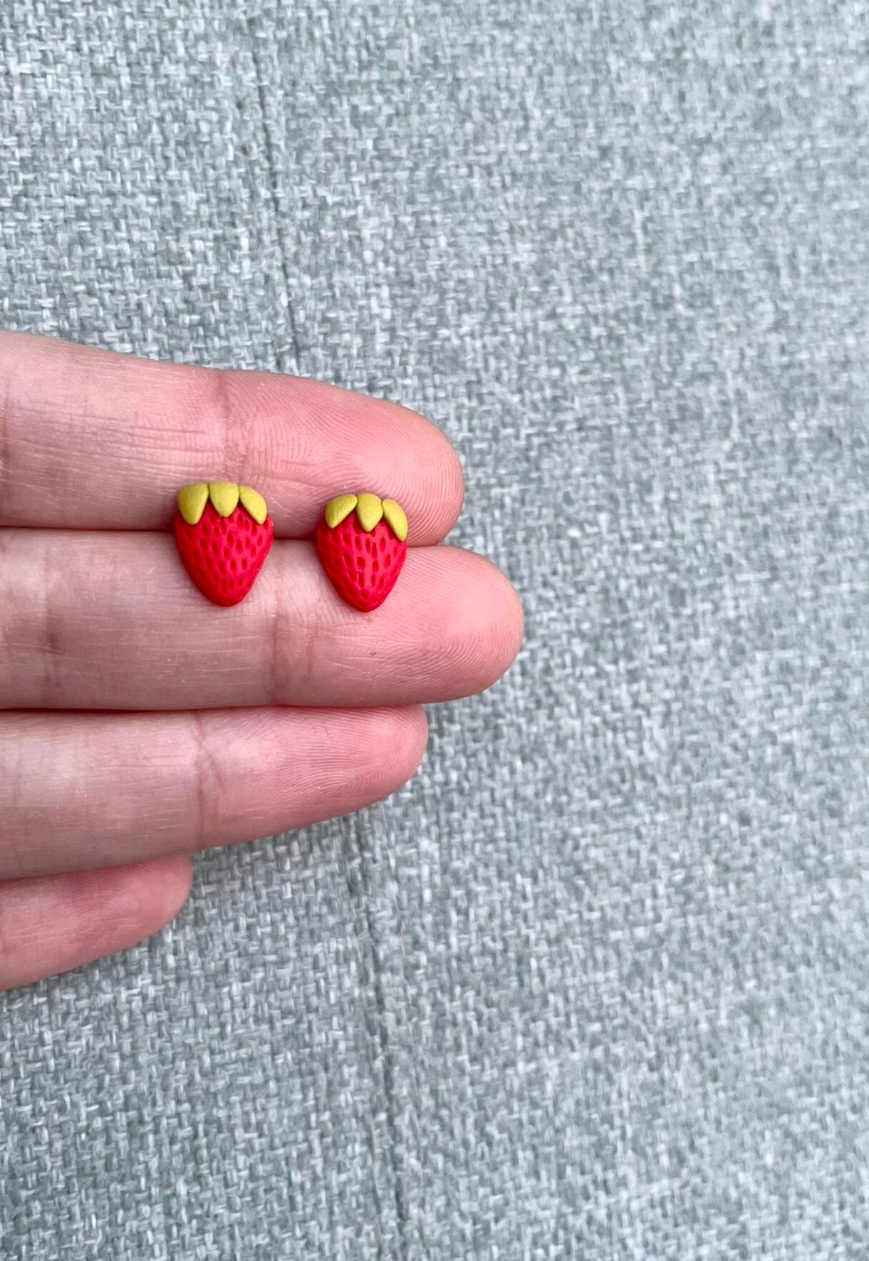 Rankų darbo braškių formos maži auskariukai pagaminti iš polimerinio molio. Simpatiški, mieli ir pilni žavesio – kiekviena pora kruopščiai nulipdyta rankomis, todėl yra unikalūs. Lengvi, patogūs ir žaismingi, jie subtiliai papuoš kasdienį įvaizdį ir pradžiugins kiekvieną gamtos mylėtoją. Puiki dovana sau arba tai, kas mėgsta išskirtinius, širdį ir akis šildančius aksesuarus. Tai – rankų darbo kūrinys, kurio gimimui reikia nemažai laiko, kruopštumo, pastangų bei daug meilės.
