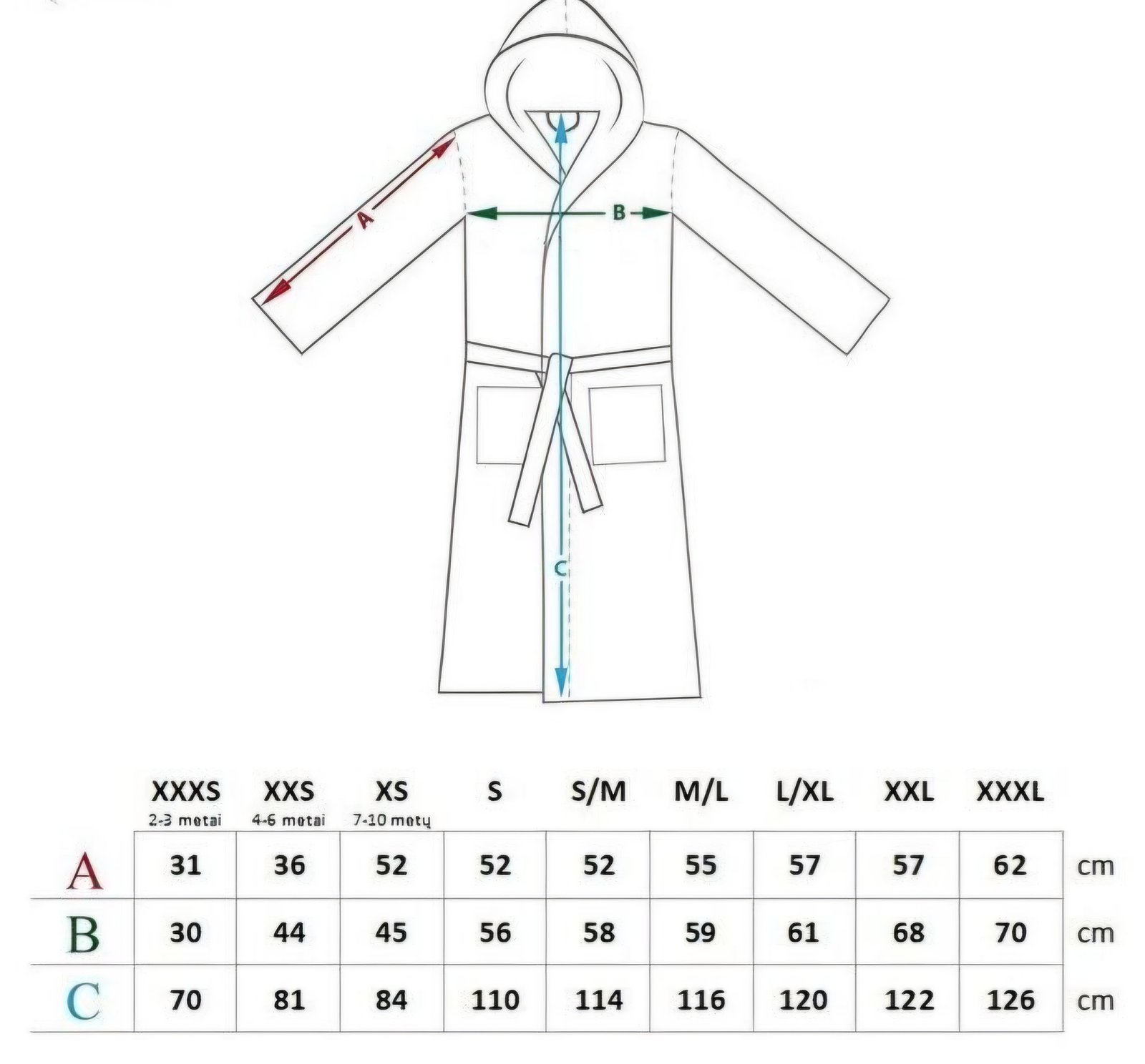 Chalatas pasižymi kokybišku pasiuvimu ir patvarumu, todėl tarnaus ilgai ir išlaikys savo formą net po daugelio skalbimų. Natūralus audinys malonus odai tiek vaikams, tiek suaugusiems.