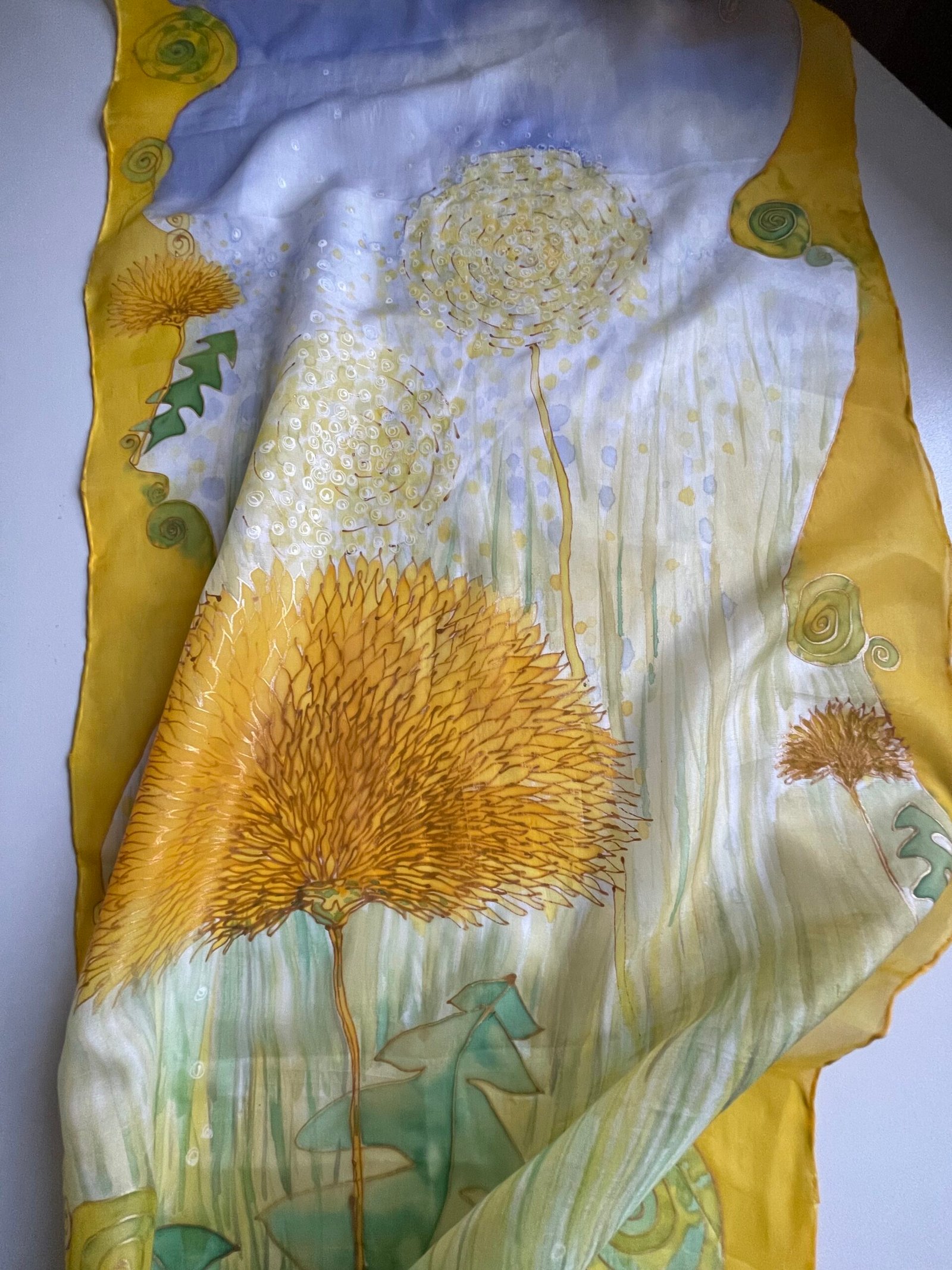 Pirkdami šią šilko skarą remiate Kauno seserų benediktinių vienuolyną. Dėkui už tai!