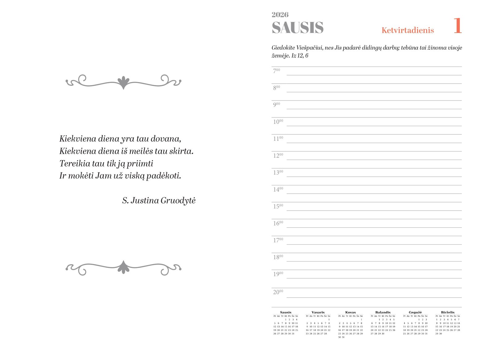- įkvepiančią Šv. Rašto citatą kiekvienai dienai;