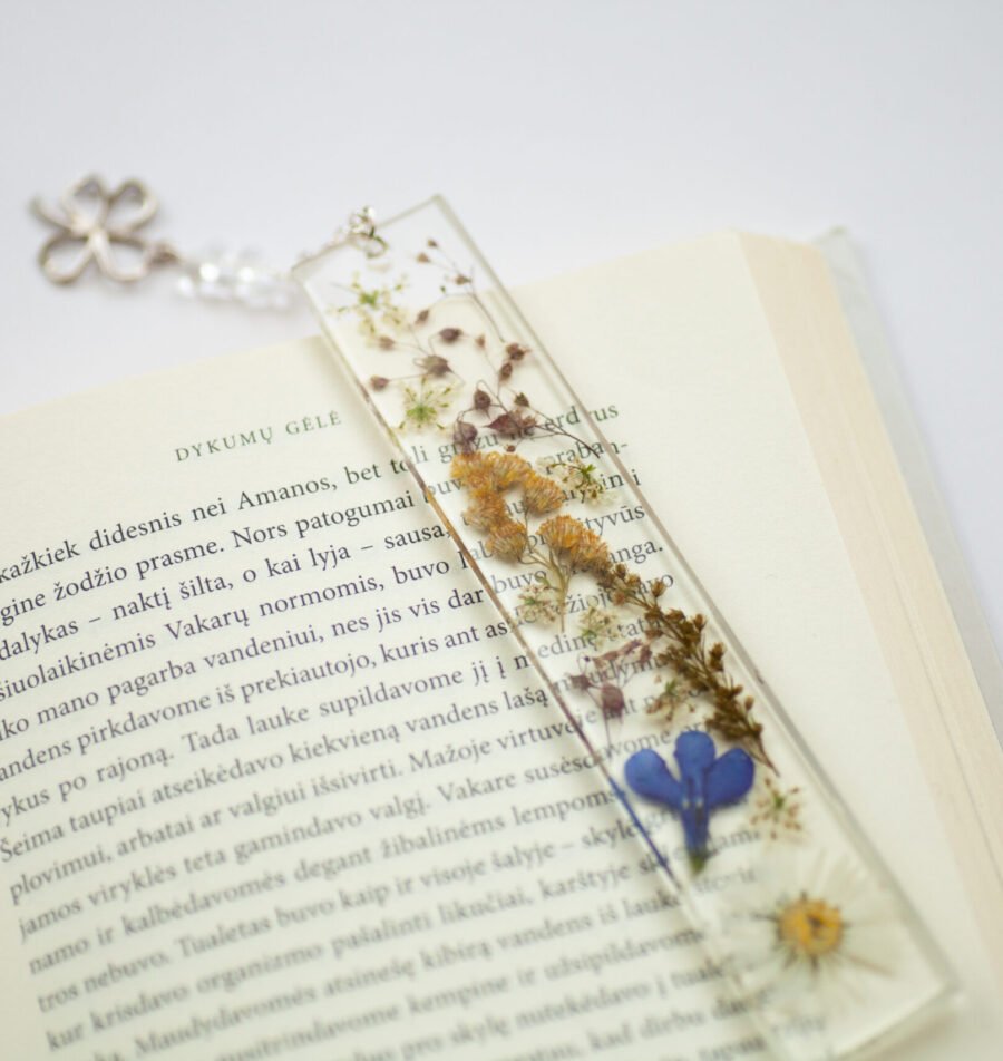 Įkvėpkite gyvybės savo skaitymo akimirkoms su išskirtiniu, rankų darbo knygos skirtuku. Tai ne tik praktiškas aksesuaras, bet ir mažas meno kūrinys, kuriame sustabdytas laikas ir natūralus gamtos grožis. Kiekvienas skirtukas yra vienintelis ir nepakartojamas. Nors gaminama laikantis tos pačios stilistikos ir naudojant tuos pačius augalus, gamta nekartoja savęs – todėl ir Jūsų pasirinktas gaminys bus vienetinis.