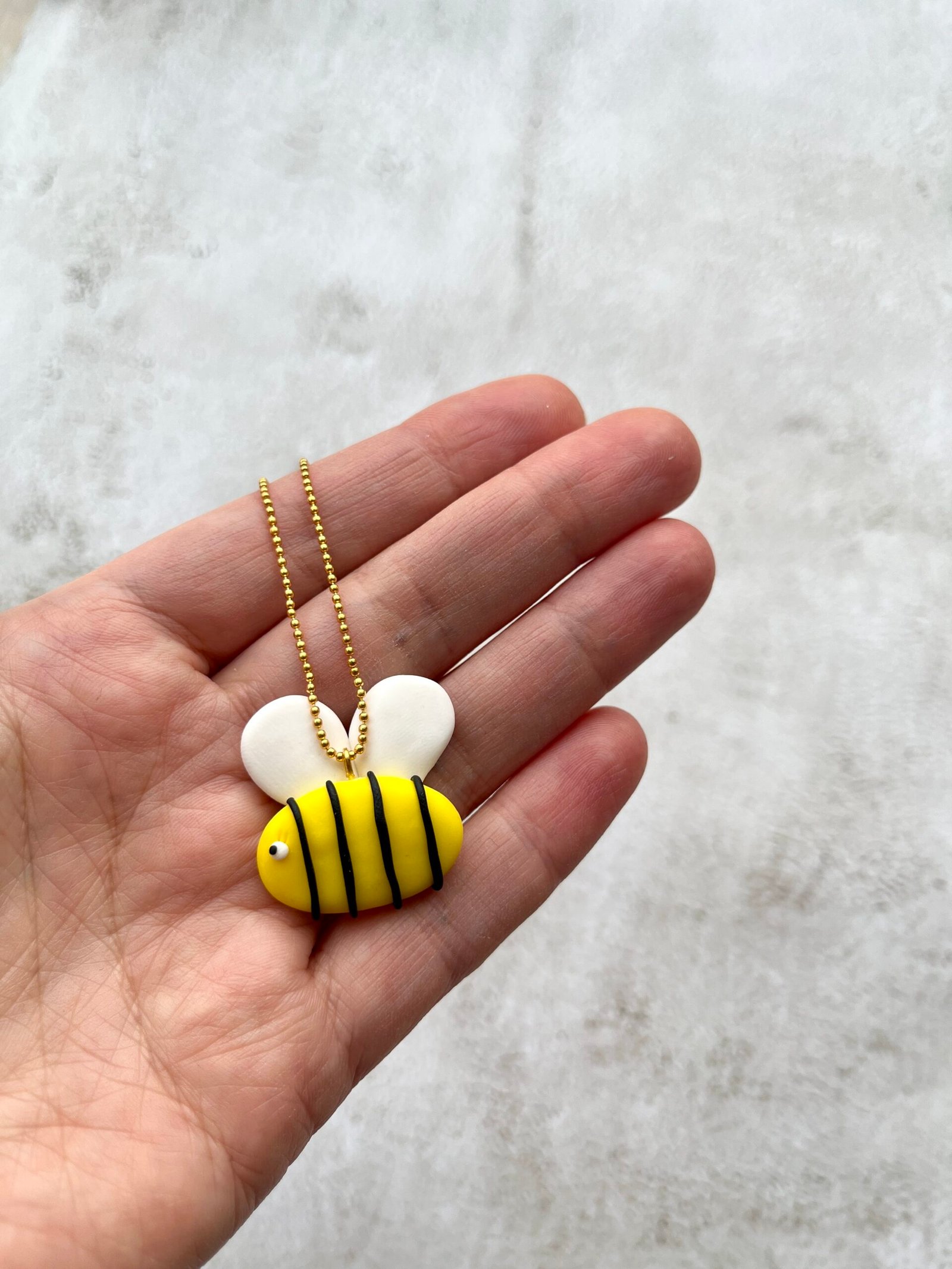 Rankų darbo pakabukas su bitute – tai mažas stebuklas, kuris telpa ant kaklo. Kiekvienas gyvūnėlis kruopščiai nulipdytas iš polimerinio molio, todėl yra unikalus, kupinas charakterio ir geros nuotaikos. Su dailia grandinėle jis tampa ne tik papuošalu, bet ir mažu draugu, lydinčiu kasdienius nuotykius.