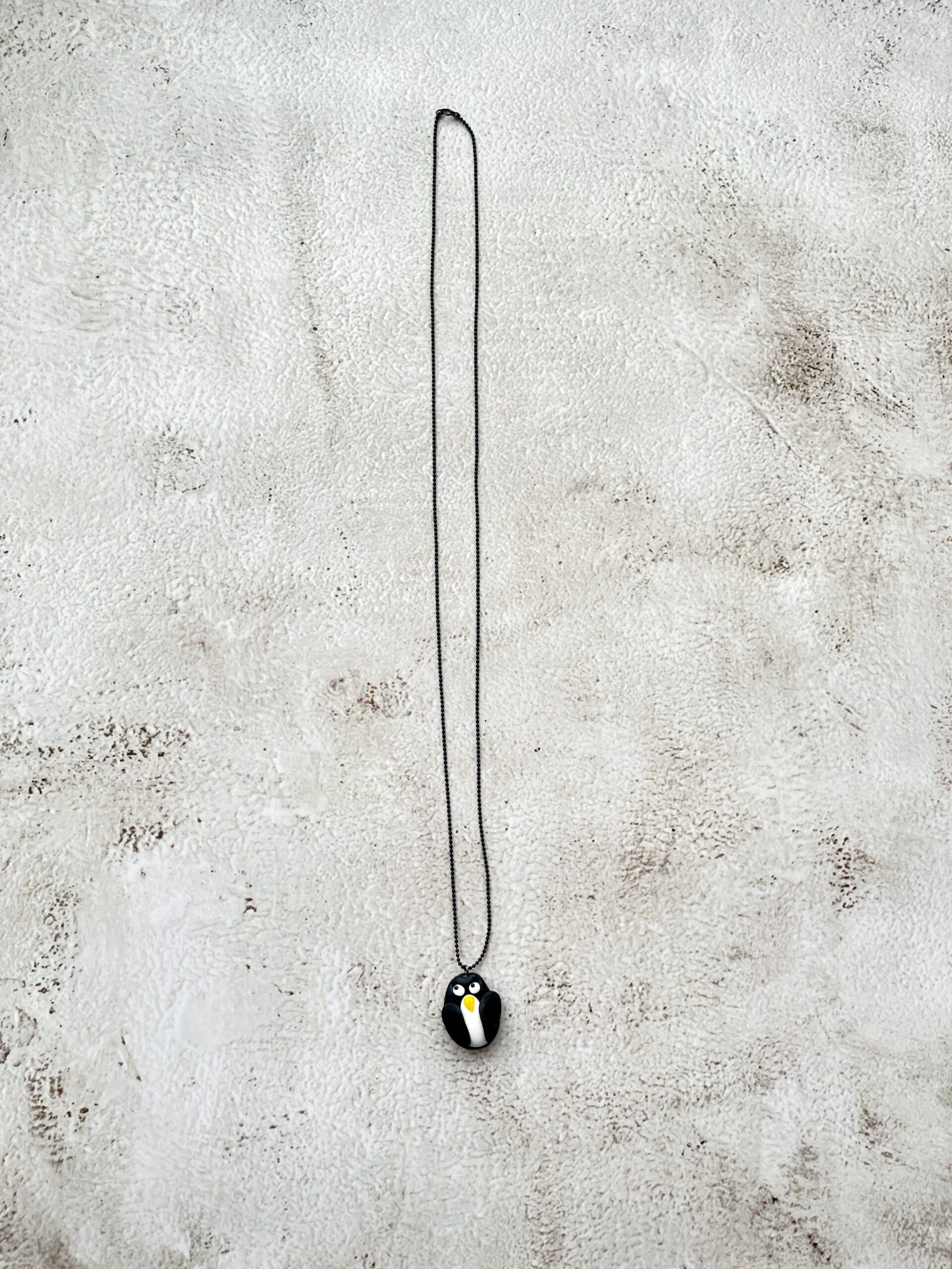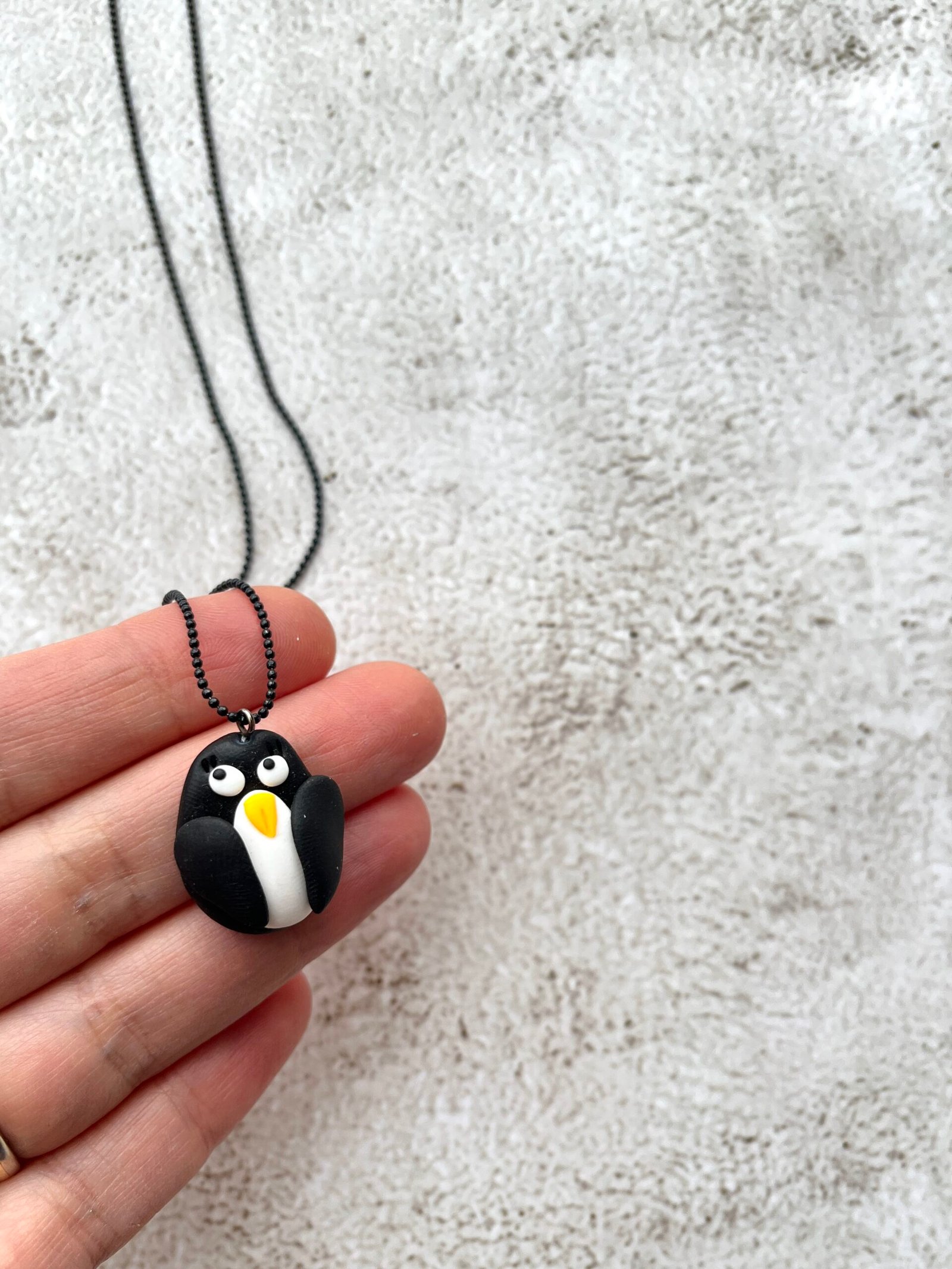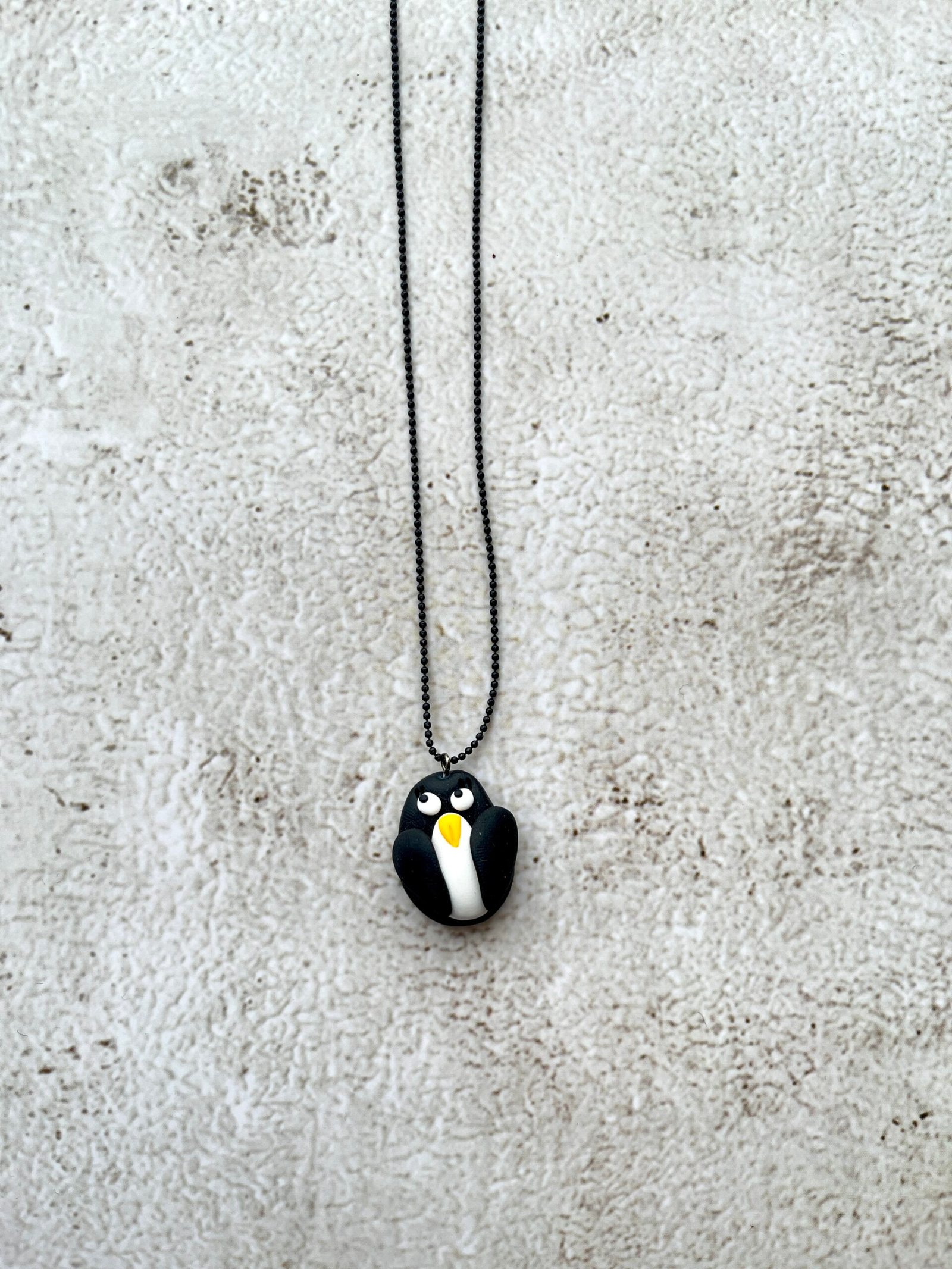 Rankų darbo pakabukas su simpatišku pingviniuku – tai mažas stebuklas, kuris telpa ant kaklo. Kiekvienas gyvūnėlis kruopščiai nulipdytas iš polimerinio molio, todėl yra unikalus, kupinas charakterio ir geros nuotaikos. Su dailia grandinėle jis tampa ne tik papuošalu, bet ir mažu draugu, lydinčiu kasdienius nuotykius.