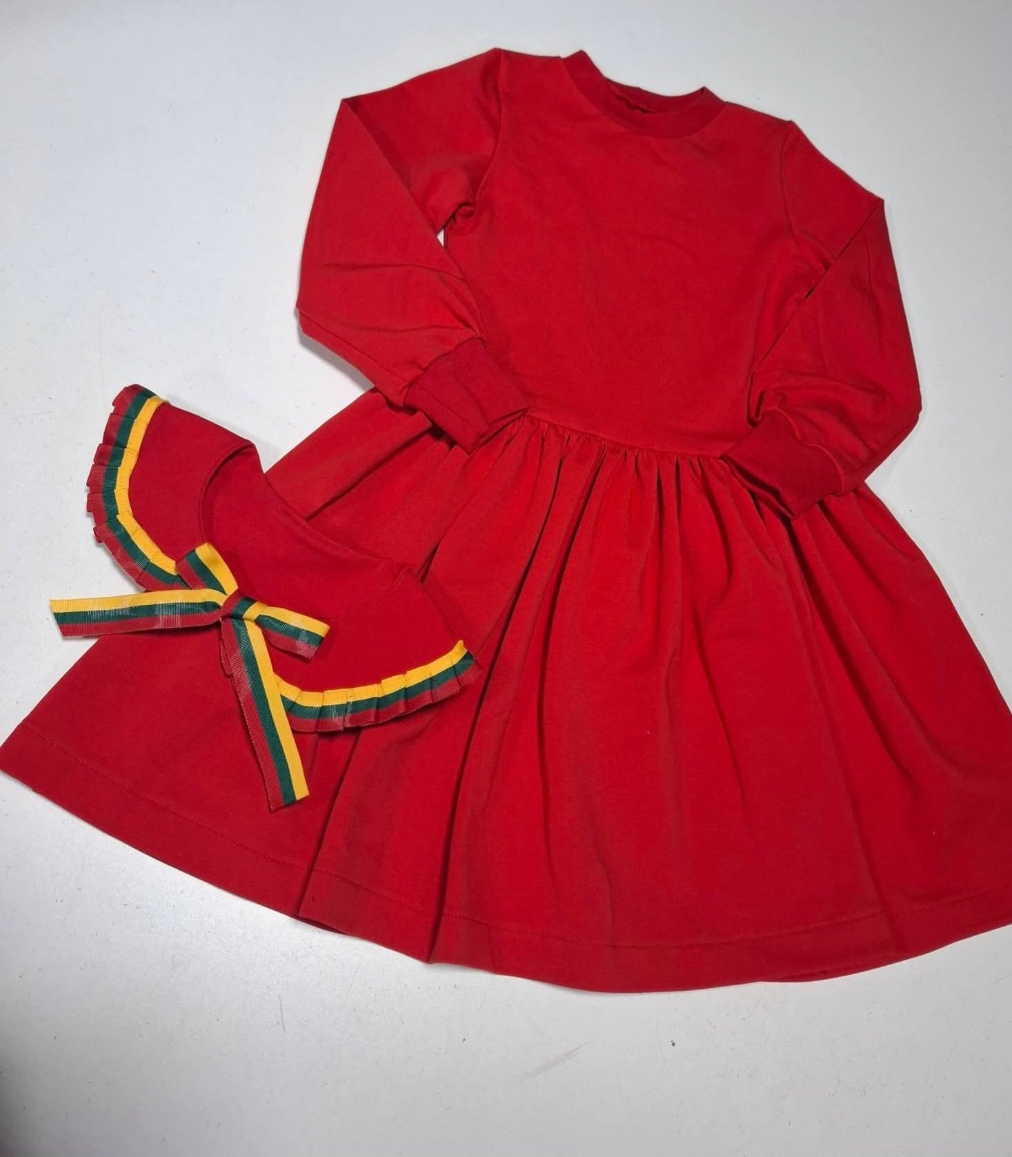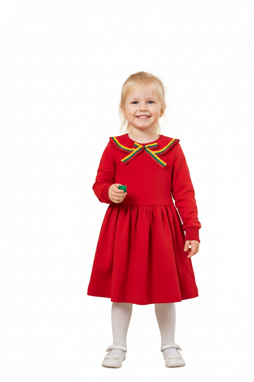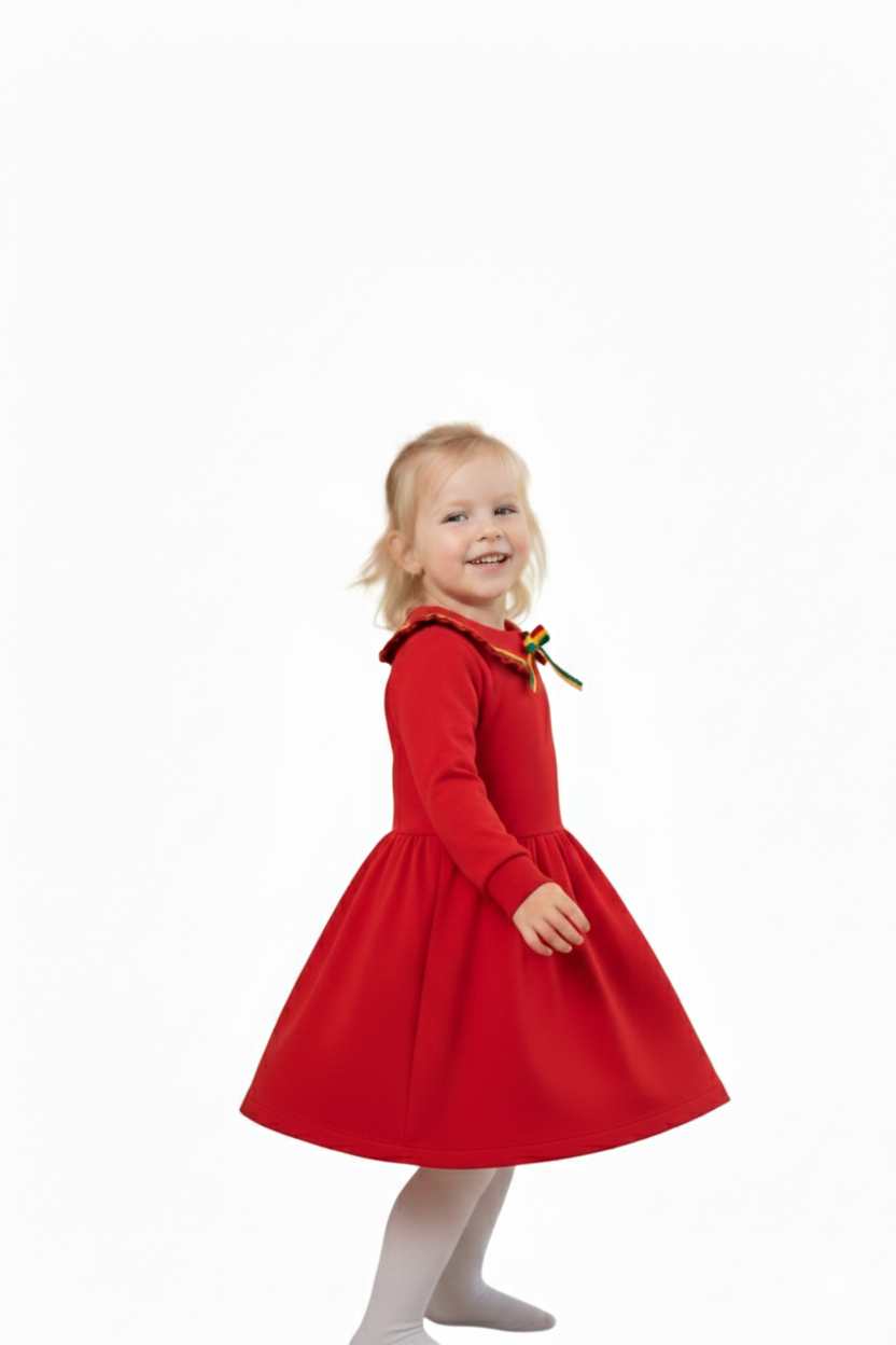 Suknelė ilgomis rankovėmis mergaitėms, kurios mėgsta judėjimo laisvę, tačiau nori atrodyti puošniai tiek darželyje, tiek šeimos šventėse ar valstybinių švenčių metu. Suknelė pasiūta iš aukščiausios kokybės medvilnės trikotažo, kuris leidžia odai kvėpuoti ir jos nedirgina. Medvilnė suteikia jaukumo ir natūralumo, o nedidelė elastano dalis užtikrina, kad suknelė neprarastų formos po skalbimo ir nevaržytų aktyvių judesių.