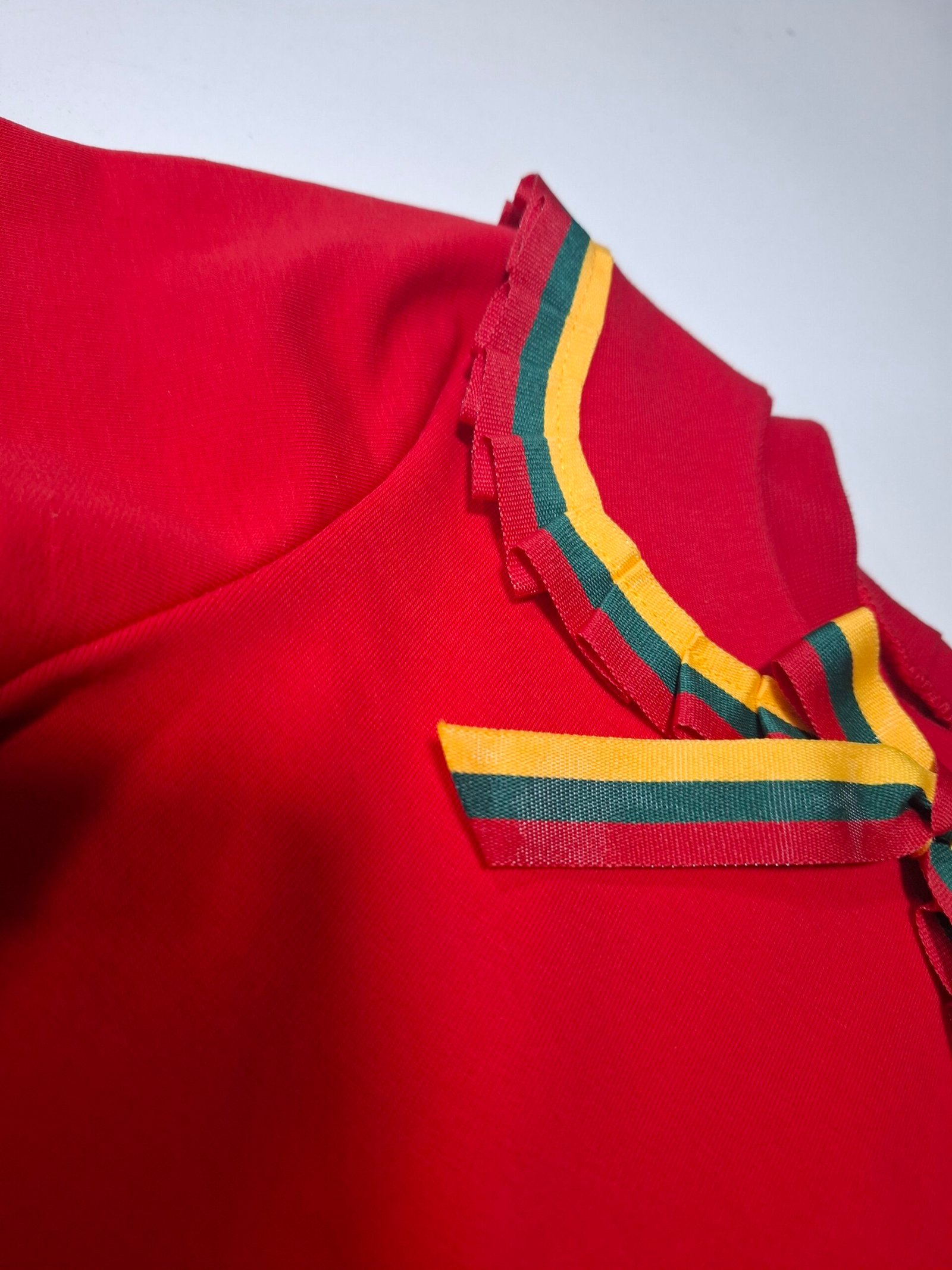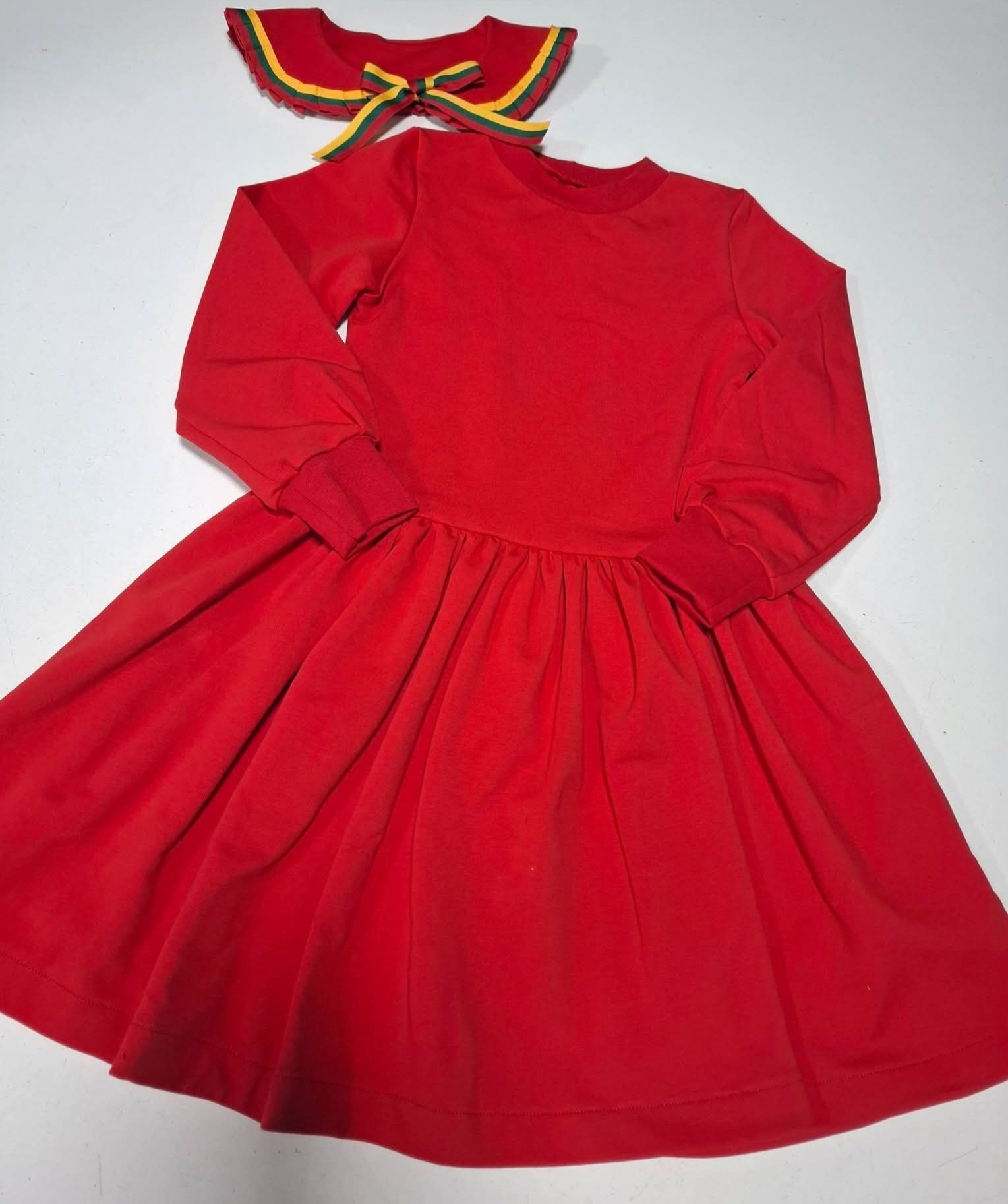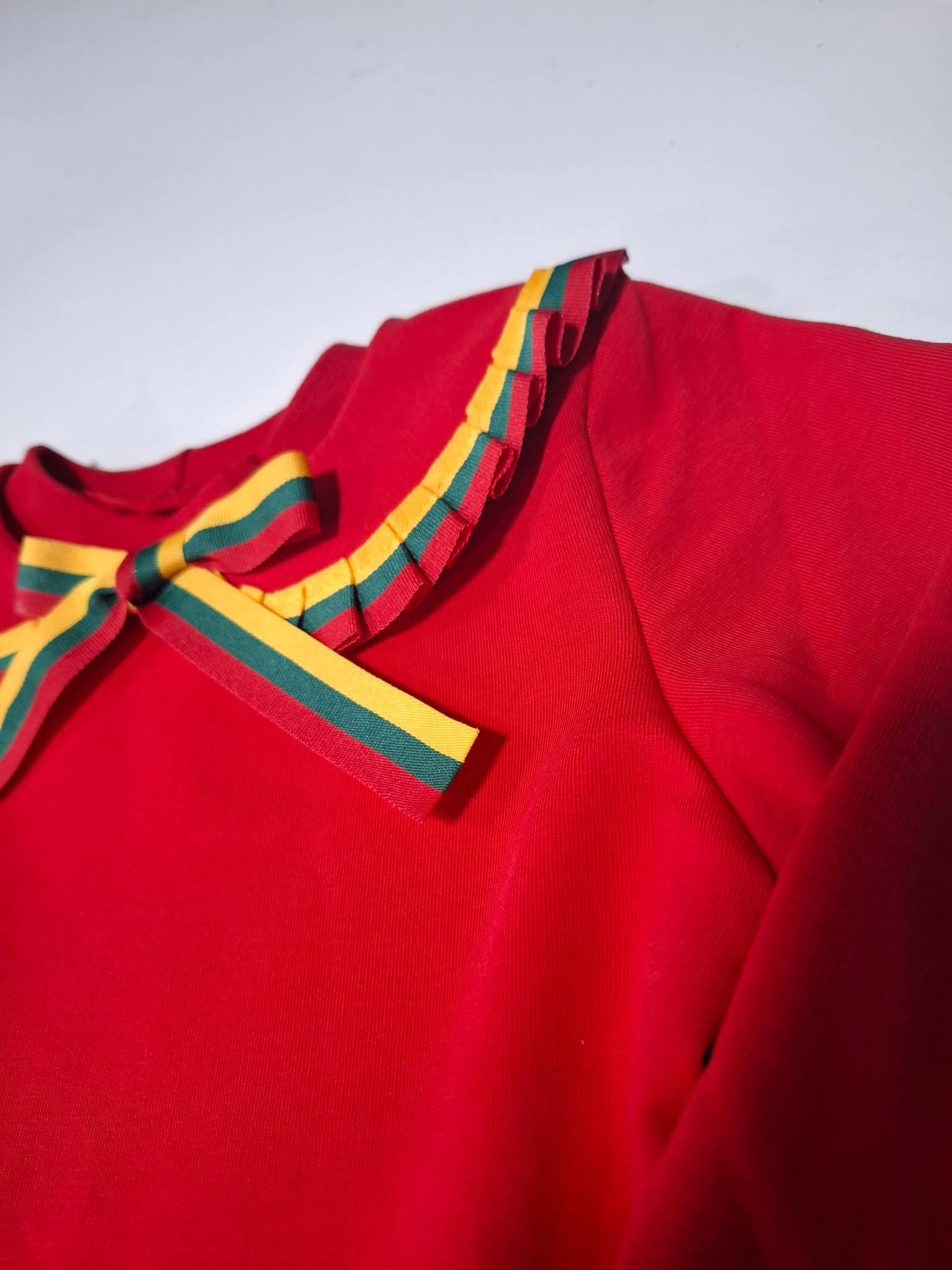 Suknelė ilgomis rankovėmis mergaitėms, kurios mėgsta judėjimo laisvę, tačiau nori atrodyti puošniai tiek darželyje, tiek šeimos šventėse ar valstybinių švenčių metu. Suknelė pasiūta iš aukščiausios kokybės medvilnės trikotažo, kuris leidžia odai kvėpuoti ir jos nedirgina. Medvilnė suteikia jaukumo ir natūralumo, o nedidelė elastano dalis užtikrina, kad suknelė neprarastų formos po skalbimo ir nevaržytų aktyvių judesių.