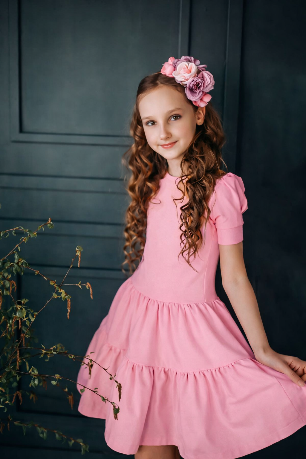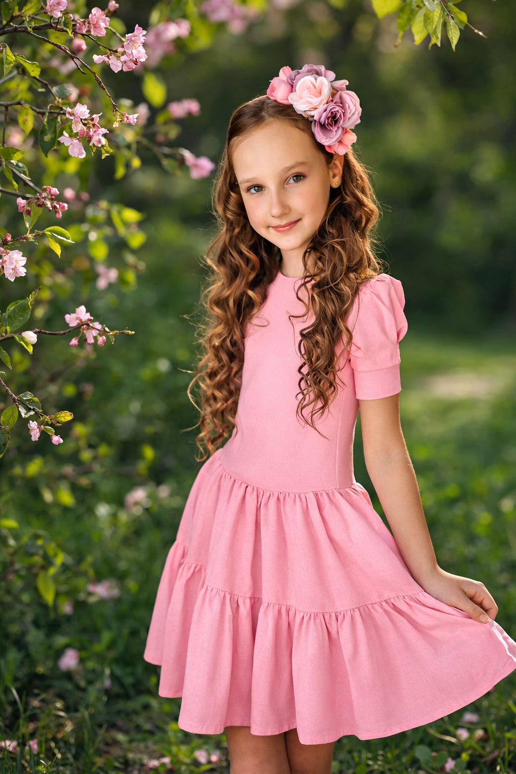 Suknelė trumpomis rankovėmis mergaitėms, pasiūta iš aukščiausios kokybės medvilnės trikotažo, kuris leidžia odai kvėpuoti ir jos nedirgina. Medvilnė suteikia jaukumo ir natūralumo, o nedidelė elastano dalis užtikrina, kad suknelė neprarastų formos po skalbimo ir nevaržytų aktyvių judesių.