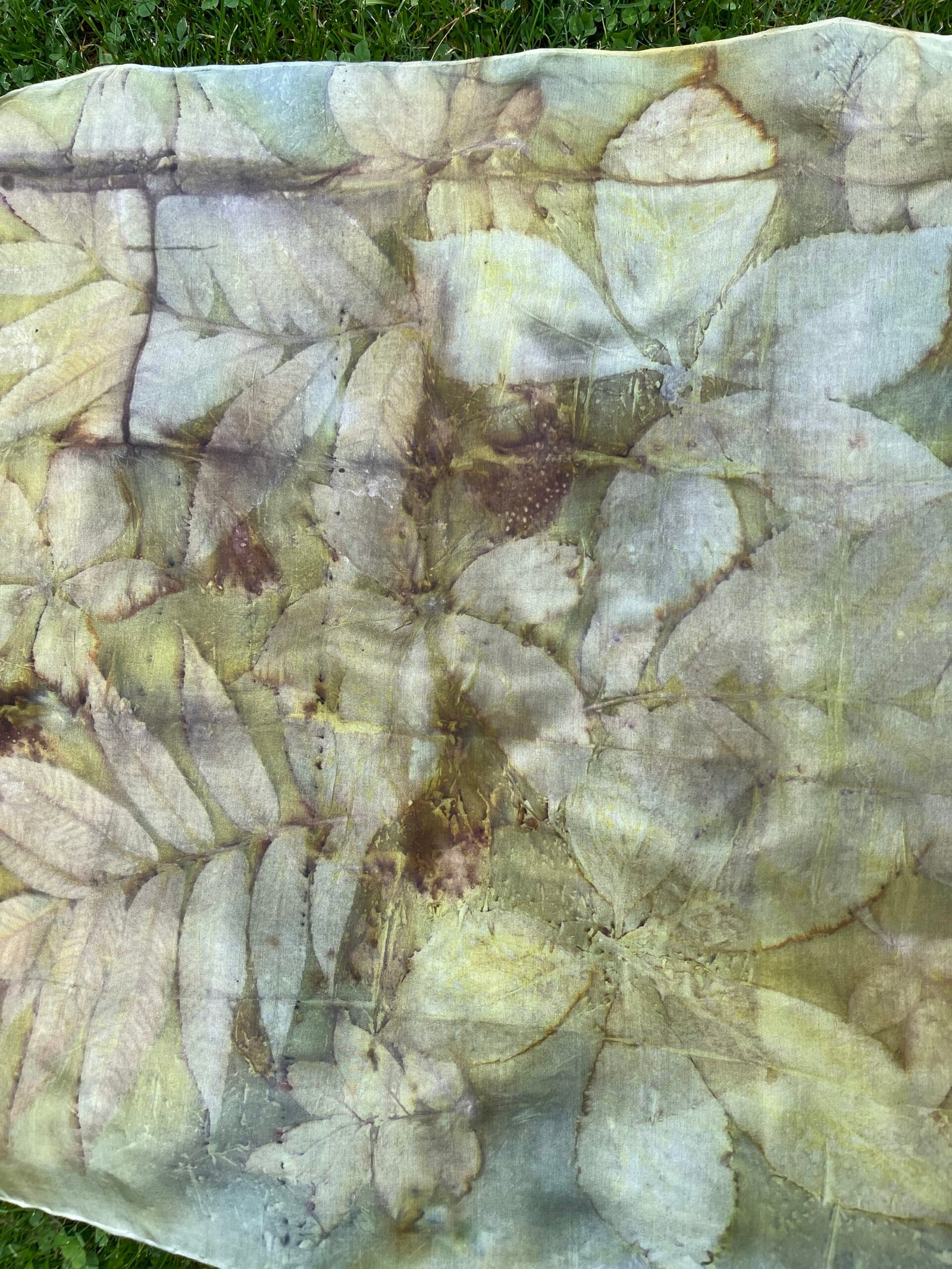 Šio originalaus rankų darbo kūrinio tapybai naudoti šilkui skirti dažai ir natūralūs augalai.