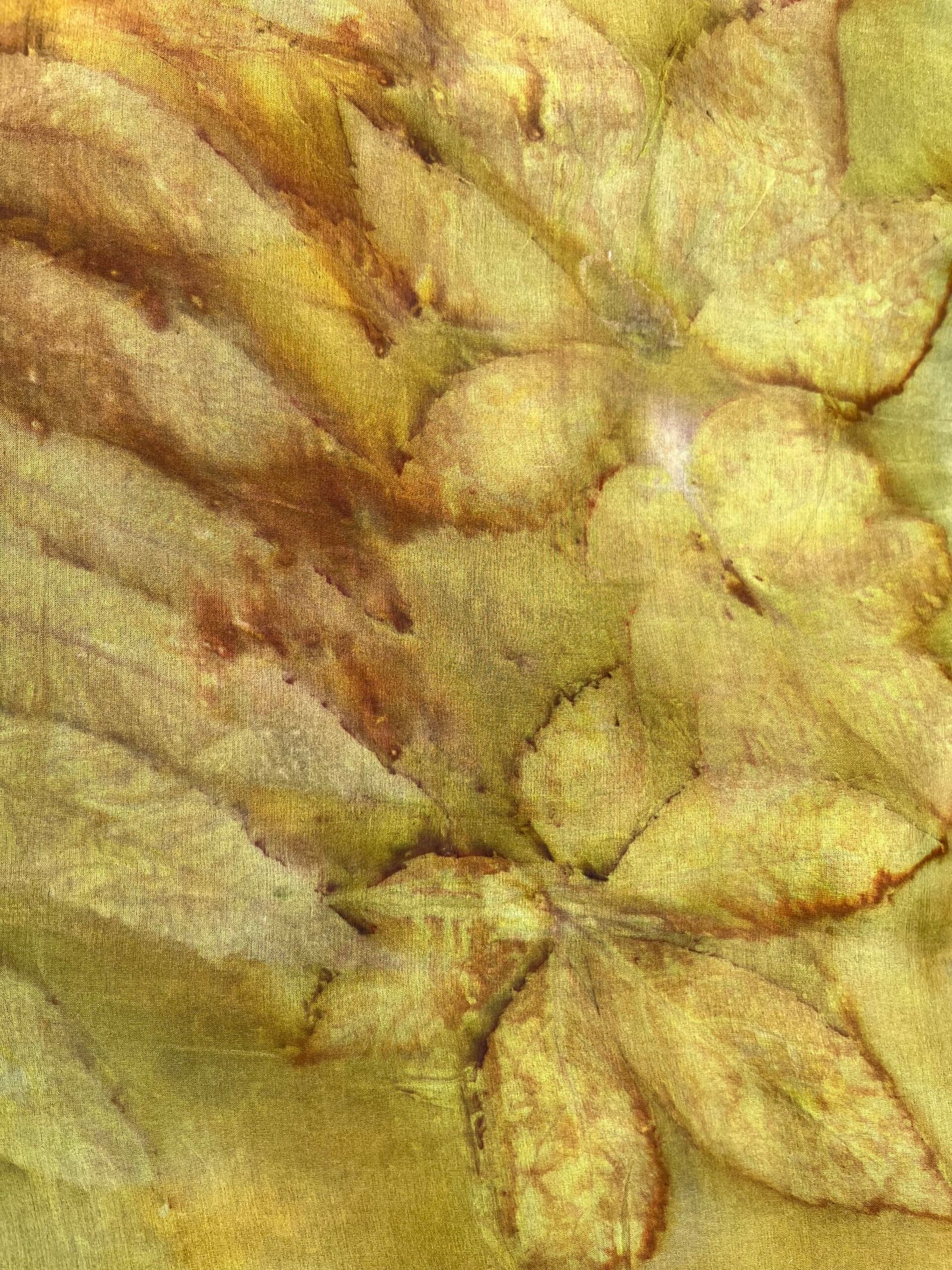 Šio originalaus rankų darbo kūrinio tapybai naudoti šilkui skirti dažai ir natūralūs augalai.
