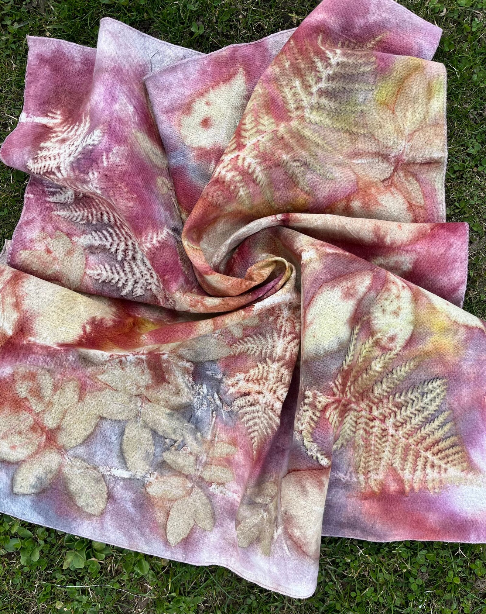 Ši unikali, vienetinė, rankų darbo skara dažyta natūraliais augalais ir šilkui skirtais dažais.