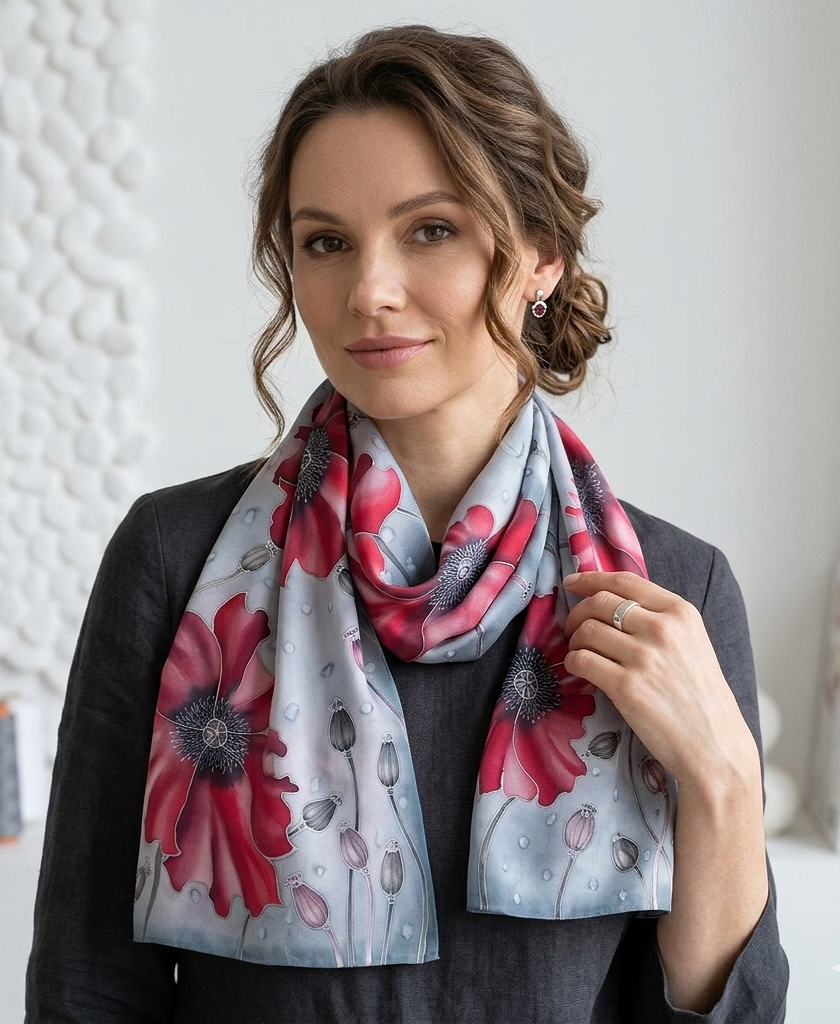 Skara iš 100 % šilko – tikras elegancijos aksesuaras, subtilus ir išskirtinis aprangos akcentas! Natūralus Mulberry šilkas yra švelnus, lengvas ir minkštas audinys, maloniai priglunda prie kūno. Ryšėkite šią skarelę ant kaklo, puoškite plaukus ar švarkelį, be to, šis spalvingas aksesuaras atkreips visų dėmesį atsiradęs ant riešo ar rankinės