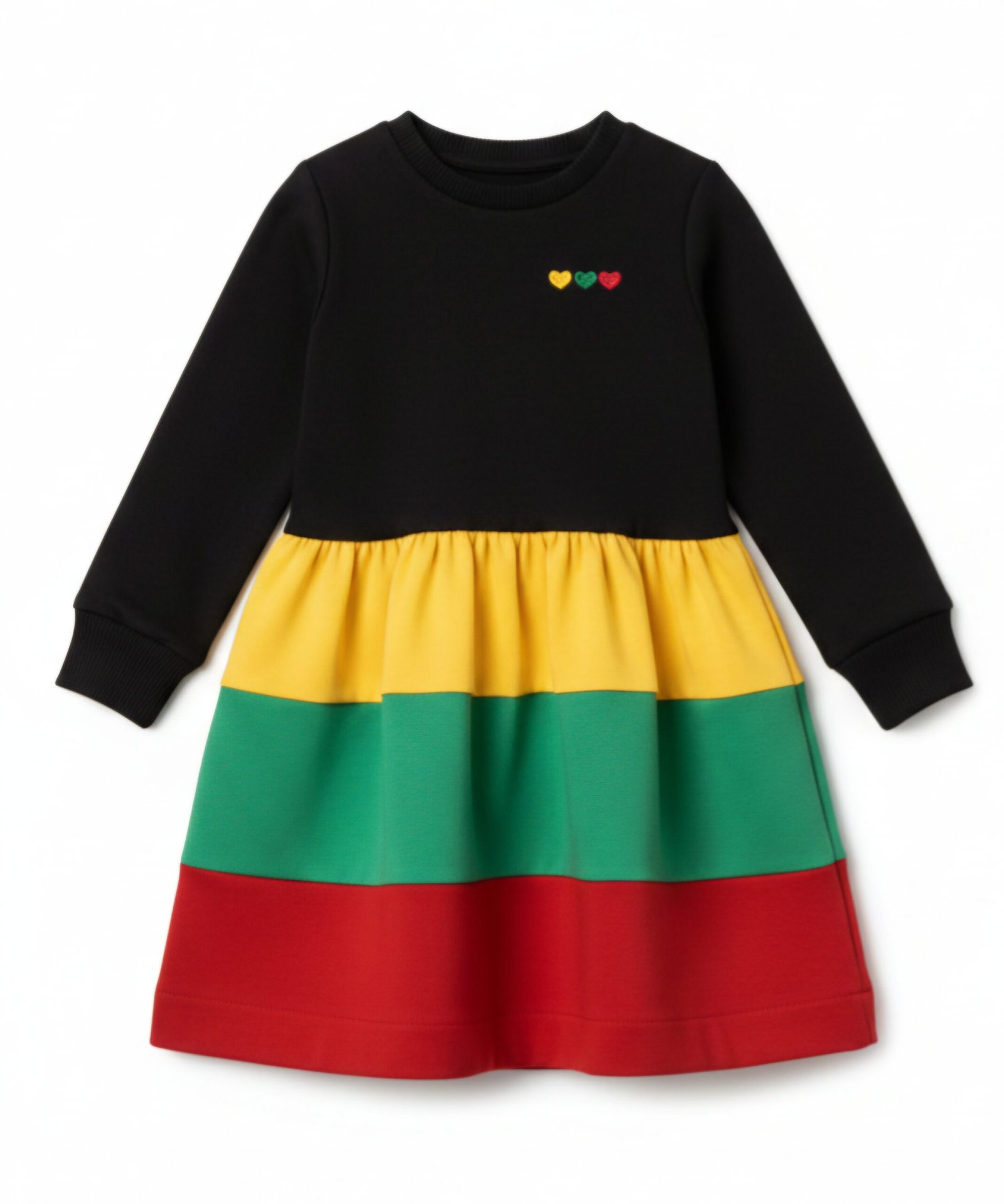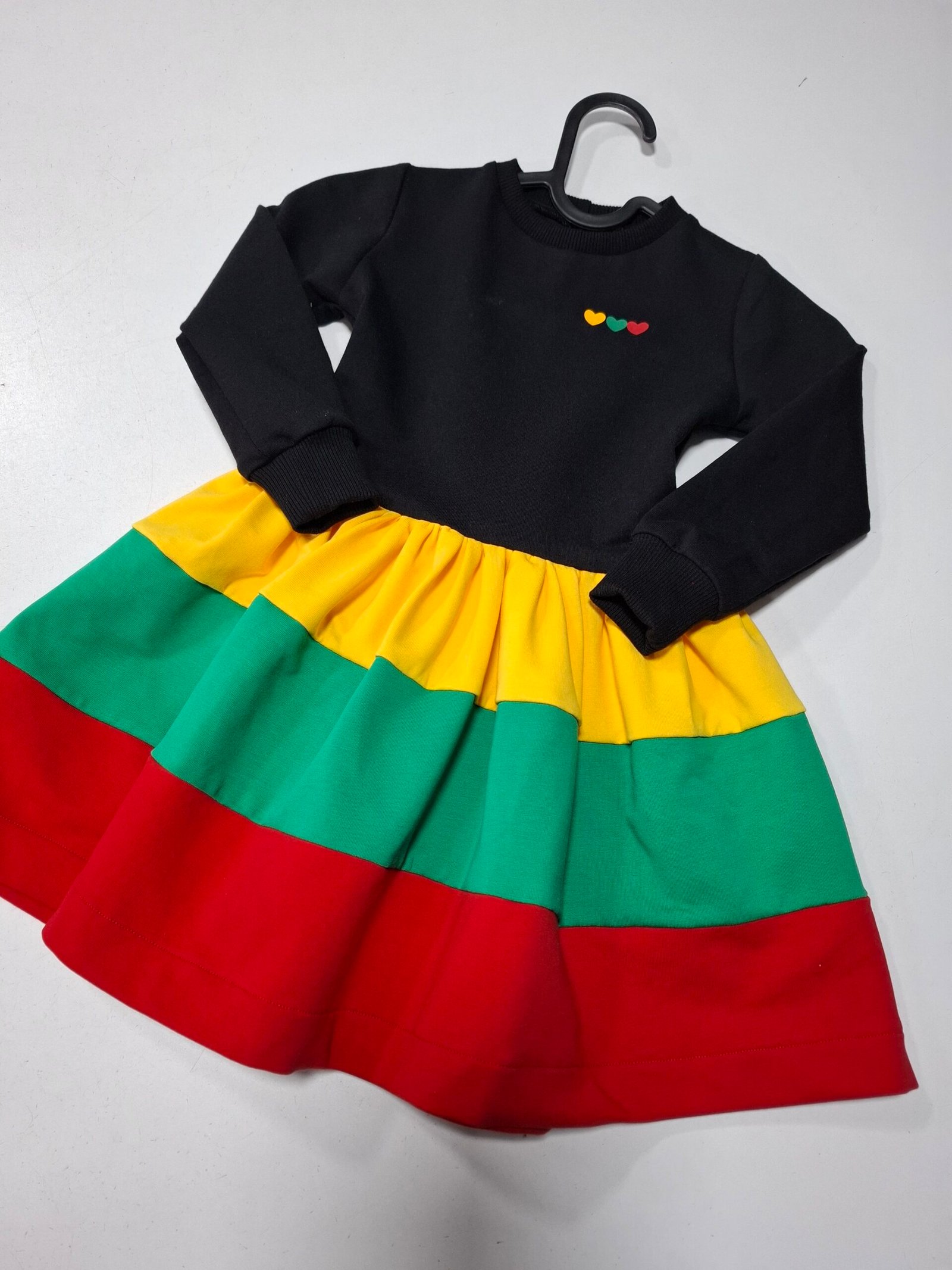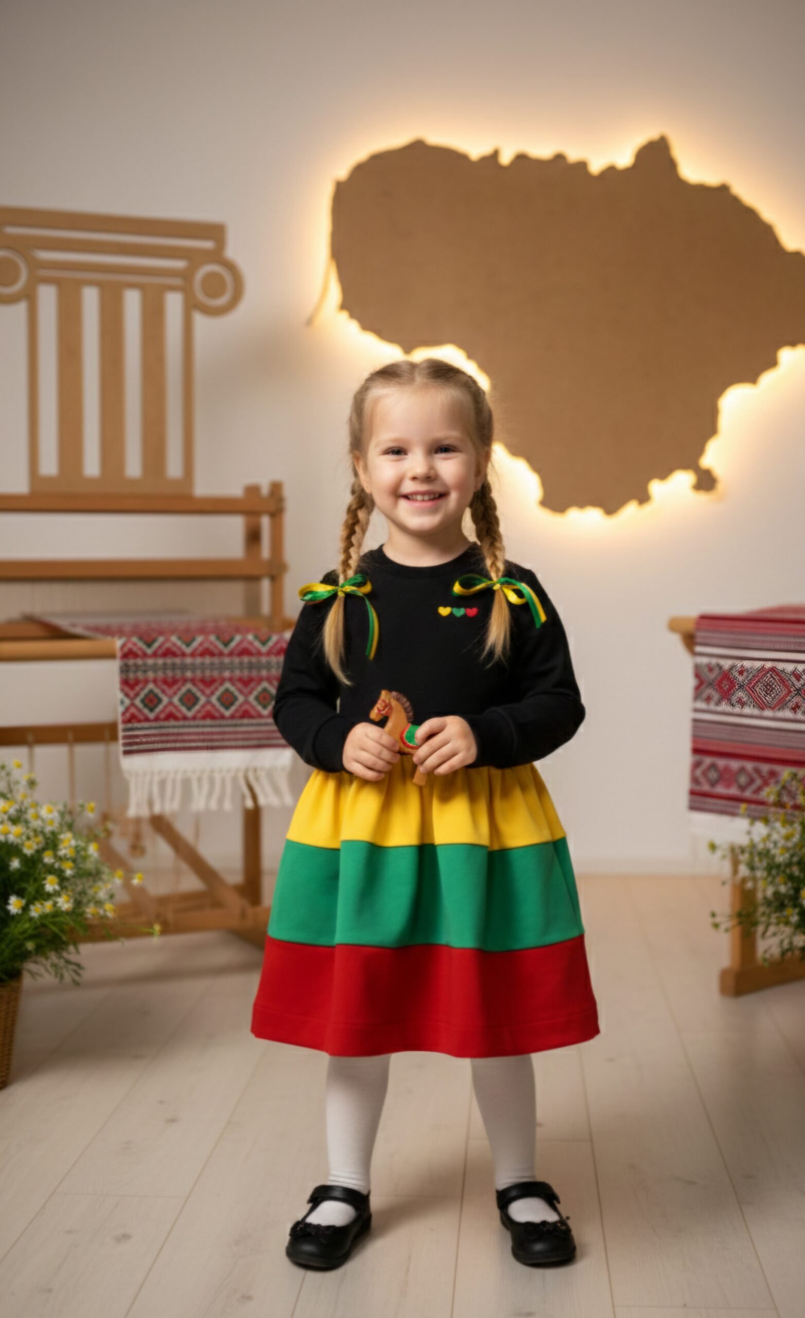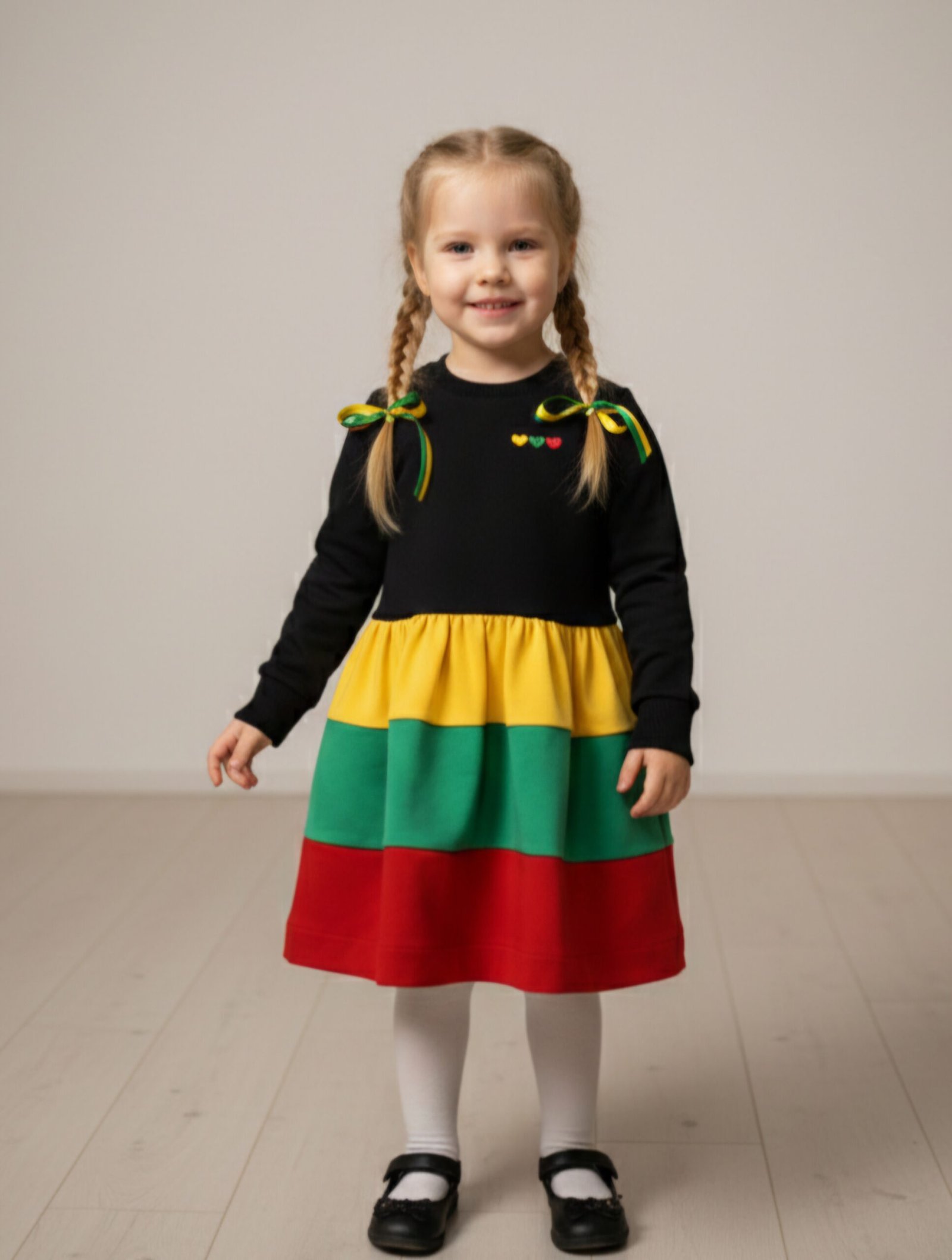 Suknelė ilgomis rankovėmis mergaitėms, kurios mėgsta judėjimo laisvę, tačiau nori atrodyti puošniai tiek darželyje, tiek šeimos šventėse ar valstybinių švenčių metu. Suknelė pasiūta iš aukščiausios kokybės medvilnės trikotažo, kuris leidžia odai kvėpuoti ir jos nedirgina. Medvilnė suteikia jaukumo ir natūralumo, o nedidelė elastano dalis užtikrina, kad suknelė neprarastų formos po skalbimo ir nevaržytų aktyvių judesių.