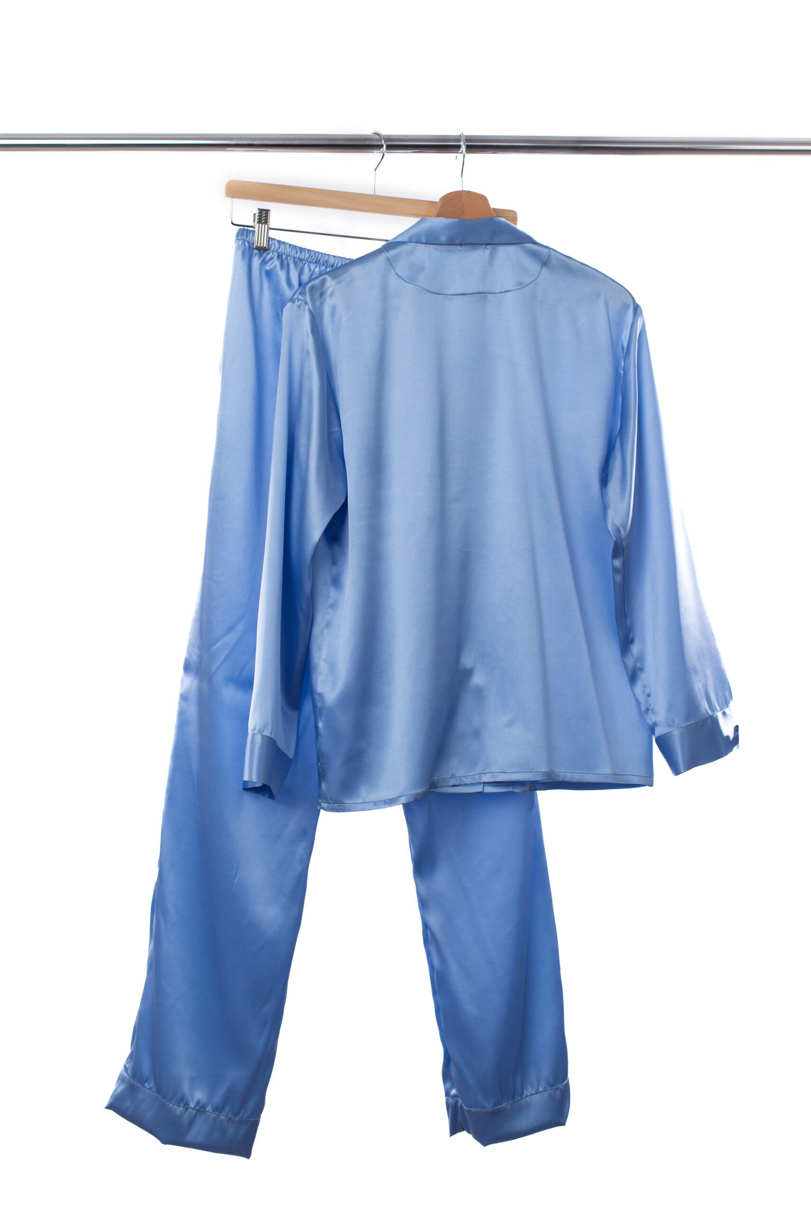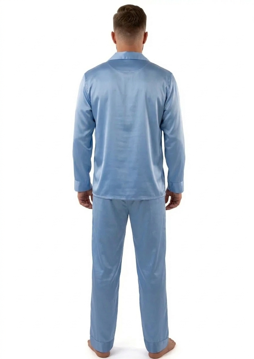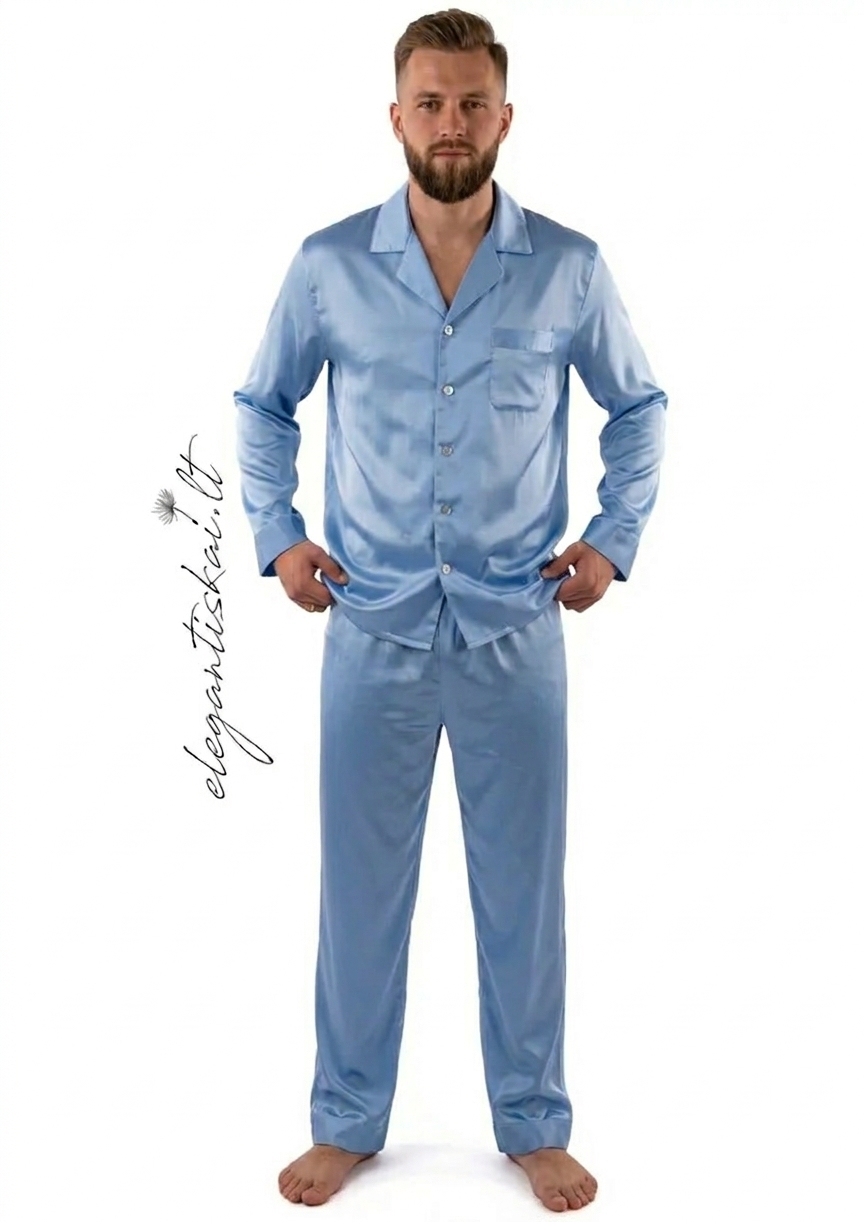 Vyriška natūralaus šilko pižama su kelnėmis suteiks malonius kūno pojūčius. Prabangus šilko audinys lengvas, minkštas, švelnus, neerzina net jautriausios odos. Natūralus šilkas kaitrią vasarą vėsina, o žiemą šildo. Laisvo silueto natūralaus šilko pižama nevaržo judesių, neaptempia, nespaudžia miego metu. Be to, tokie šilko rūbai prabangiai atrodo kasdienybėje, namų aplinkoje.